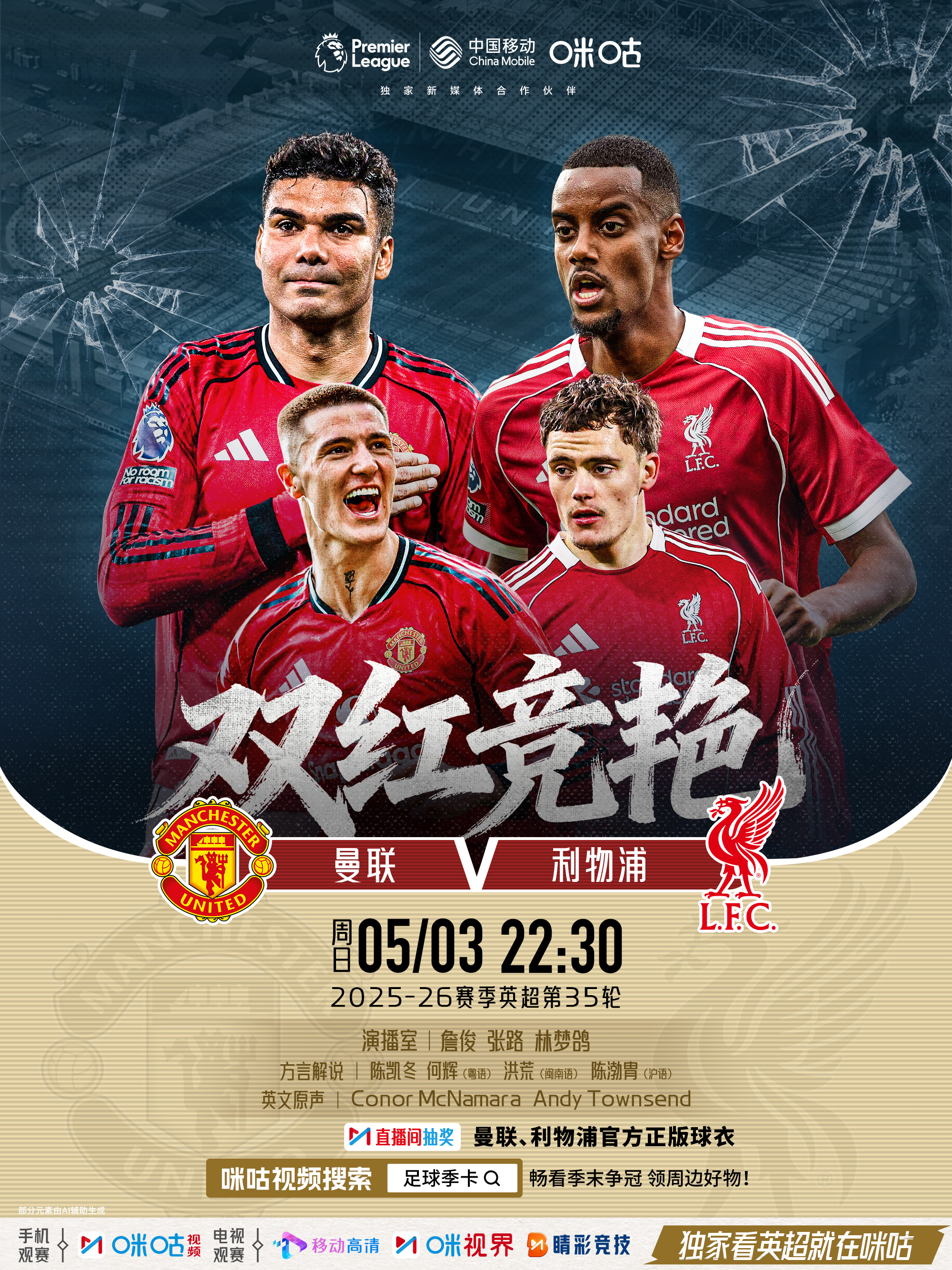𝗣𝗿𝗲𝗺𝗶𝗲𝗿 𝗟𝗲𝗮𝗴𝘂𝗲👹 #曼联vs利物浦# 🐦🔥📺 《双红竞艳》🔒 5月3日 22:30 周日 #五一全勤看球不上班##独家看英超就在咪咕#📲网页链接