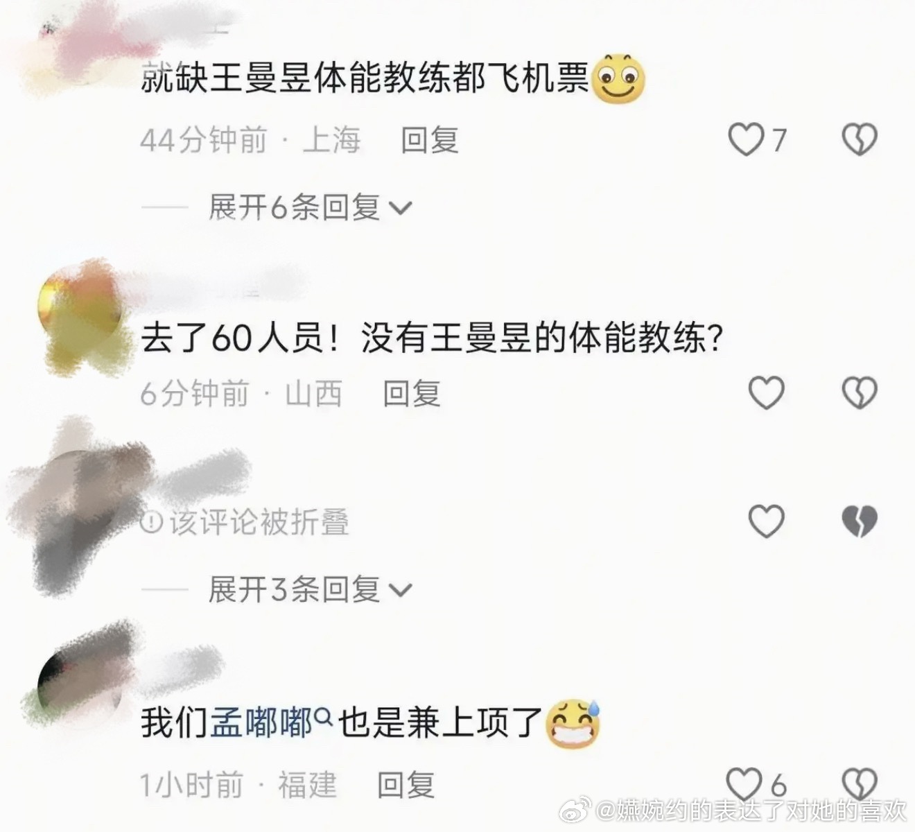 王曼昱粉丝:就王曼昱体能教练没飞机票,转头一看不知道几个人跟她练体能