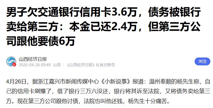 浙江温州泰顺的杨先生,2021 年因信用卡透支欠下交通银行 3.6 万元本金。逾期后银行将他起诉,经法院调解,双方达成还款协议:3.6 万元本金分 24 个月还清,每月固定还款 1500 元;若杨先生逾期未足额还款,银行可就本金 3.6 万及 4 万余元利息一并申请强制执行。 之后杨先生一直按时向银行还款,截至 2024 年八九月,已累计偿还 2.4 万元,剩余本金仅 1.2 万元。可就在他准备继续还款时,银行工作人员突然告知,他的这笔债务已被打包转让给苏州一家资产管理有限公司,此后需向第三方公司还款。 更让杨先生崩溃的是,他从未收到过债务转让通知,原手机号早已停用,银行所谓的 “2025 年 8 月 29 日发送通知”,他压根没收到。而这家资产管理公司一上来就要求他偿还 6 万元,远超剩余的 1.2 万本金。 如今杨先生陷入两难:第三方公司天天打电话、发短信催收,严重影响正常生活;法院那边也通知他要继续履行还款义务,一边是银行的调解协议,一边是第三方的高额讨债,杨先生直呼 “比高利贷还狠,根本扛不住”。 信用卡逾期债务属于银行不良资产,为降低坏账率、回笼资金,银行常会把这类逾期债务打包,低价转让给资产管理公司,这是行业常见操作中国政府网。 按照规定,银行转让债权时,必须通知债务人,否则转让对债务人不发生法律效力。可在杨先生的案例中,银行仅称向旧手机号发了通知,未核实是否送达,也未通过短信、书面、电话等有效方式联系杨先生,明显未尽到通知义务。 说白了,银行只想着快速 “甩包袱”,把坏账风险转嫁给第三方,却忽视了债务人的知情权,流程上存在明显瑕疵。 苏州这家资产管理公司,从银行手中受让杨先生的债权时,转让金额为 65453.47 元。这笔钱包含剩余本金、利息、违约金等各项费用,而第三方公司的核心目的,就是通过讨债赚取差价和高额利润。 按照银行与杨先生的调解协议,逾期后会产生 4 万余元利息。第三方公司正是抓住这一点,直接把剩余本金、利息、违约金全部叠加,算出 6 万元的还款金额,完全无视杨先生已偿还 2.4 万元本金的事实。 更关键的是,这类资产管理公司大多采用 “高压催收” 模式,频繁电话骚扰、短信轰炸,甚至影响债务人的亲友和工作,本质上就是通过施压逼债务人妥协还款,哪怕金额远超合理范围。 对普通债务人来说,大多不懂金融和法律知识,根本不知道债务可以被转让,也不清楚债权转让的合法流程。杨先生直到被催收才知道债务被转,想维权却不知道该找银行、第三方公司还是法院。 而且在整个过程中,债务人始终处于弱势:银行和第三方公司有专业团队操作,合同条款、债权转让协议都是格式化文件,普通人很难发现其中陷阱;面对高额讨债和持续催收,很多人怕麻烦、怕影响生活,最终只能被迫还款,自认倒霉。 《民法典》第五百四十六条明确规定:债权人转让债权,未通知债务人的,该转让对债务人不发生效力。 杨先生的情况完全符合这一条:银行未有效通知他债务转让事宜,那么这笔转让对杨先生来说暂时无效,他有权拒绝向第三方公司还款,继续向原银行履行还款义务。 无论是银行还是第三方公司,计算利息、违约金时,都不能超过法律规定的上限。目前民间借贷利率司法保护上限为一年期 LPR 的 4 倍,信用卡逾期利息、罚息也需遵循相关规定,不能随意叠加高额费用。 杨先生剩余本金仅 1.2 万元,即便加上合理利息,也远达不到 6 万元,第三方公司的高额讨债金额,大概率存在违规计息、虚增债务的问题。 第三方公司频繁电话、短信轰炸,影响债务人正常生活,属于 “软暴力” 催收,已违反《治安管理处罚法》相关规定;若存在威胁、恐吓、骚扰亲友等行为,情节严重的还可能涉嫌刑事犯罪。 杨先生的遭遇不是个例,近年来,银行不良资产打包转让后,第三方公司高额讨债、暴力催收的事件频发,背后暴露的是行业监管缺位、部分机构逐利无底线的问题。 对银行而言,不能只追求自身利益,把坏账风险一 “转” 了之。债权转让必须严格遵守法律规定,履行通知义务,保障债务人的知情权,不能利用信息差损害普通人权益。 对资产管理公司来说,收购不良债权的目的是合法处置、合理回款,而非通过虚增债务、暴力催收牟取暴利。行业需加强自律,监管部门也应加大对这类公司的监管力度,严厉打击违规讨债行为。 对普通民众而言,面对信用卡、贷款逾期,要理性对待,按时还款;若遇到债务被莫名转让、高额催收的情况,不要盲目妥协,及时保留聊天记录、催收短信、还款凭证等证据,通过法律途径维护自身合法权益。 债务转让本是金融行业化解风险的正常手段,不该变成收割普通人的 “陷阱”。希望相关部门能完善监管细则,明确债权转让流程、计息标准、催收规范,让金融行业回归理性,不再让 “1.2 万变 6 万” 的荒诞事件再次发生。