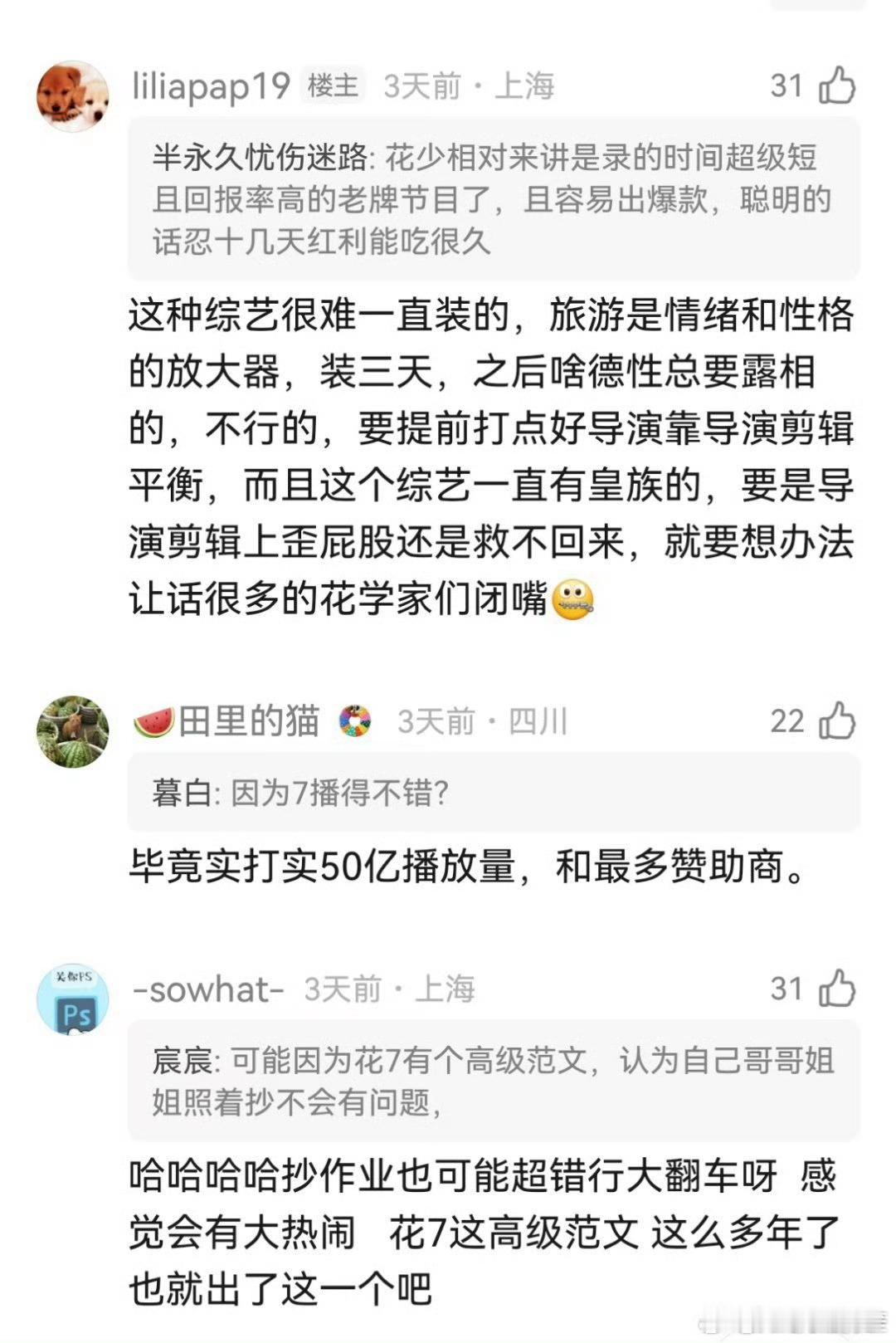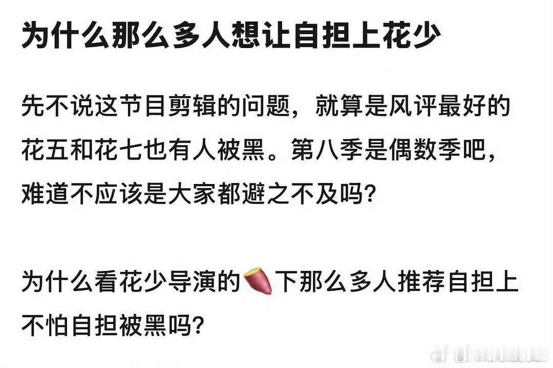 推荐自担上花少的都是很相信自担人品性情的粉丝,因为这个节目真的太暴露真实人品了