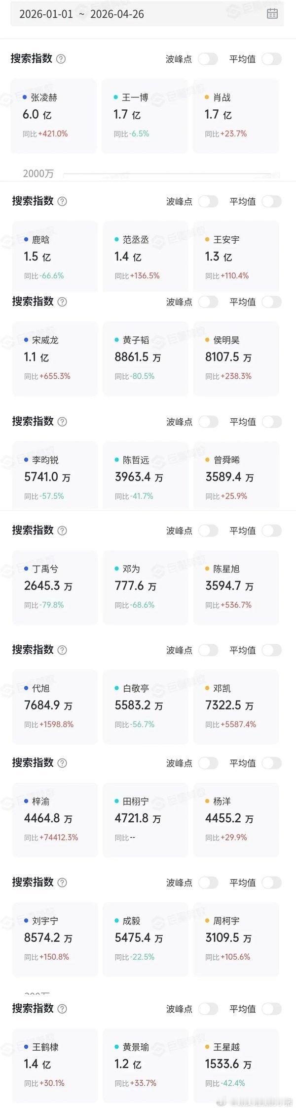 张凌赫抖话题播放量年新增超360w+,搜索指数也是全男星断层破6亿
