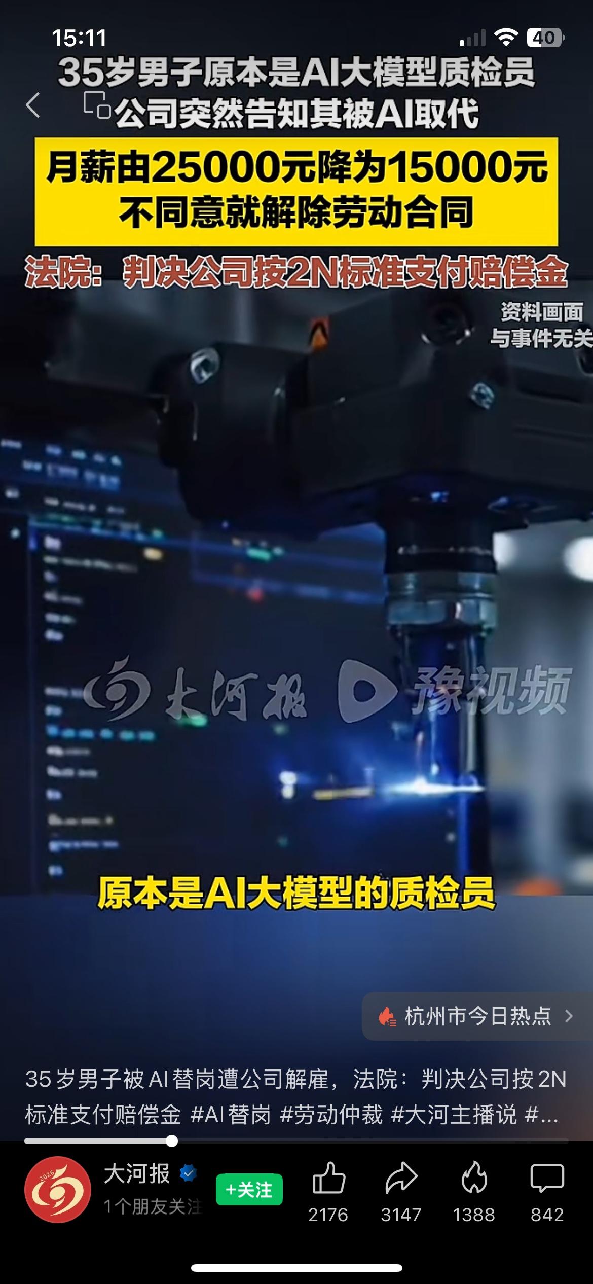 35岁打工人遭遇变相降薪,拿AI当借口裁员,千万别傻傻辞职 现在不少公司,开始借着AI替代的理由,随意给员工降薪。 明明是单方面不合理调整,不接受就变相逼迫离职。 目的很简单,就是逼着员工主动走,省下一大笔赔偿金。 这种套路看着常见,其实完全不合规,法律并不认可。 遇到强制降薪、不合理调岗,千万不要主动离职。 保留好证据,合理维权,才不会白白吃亏。 你身边有没有遇到过,这种变相逼员工走的公司? 裁员减员