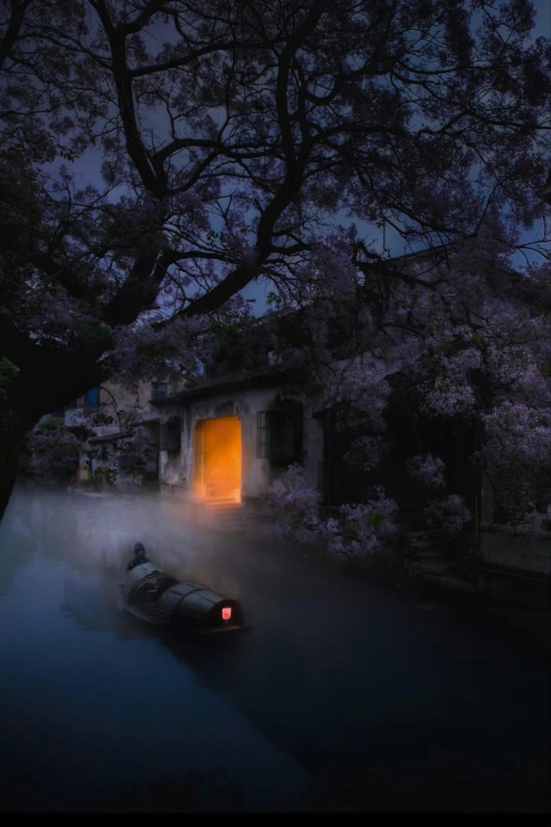 当我看到这张图的时候, 我的心一下子就静下来了! 在雾蒙蒙的水乡中, 小船慢悠悠的飘着…… 暖黄的灯亮着, 像是在等待谁回家。 这幅画面真的太温柔了, 隔着屏幕,仿佛都能听见摇橹的声音, 这一刻连风都慢下来了。 你们喜欢这种江南的氛围感吗?