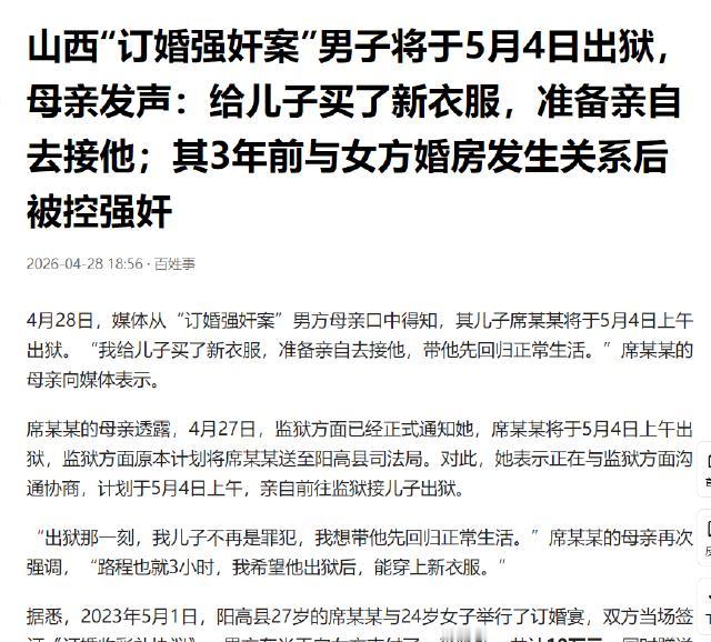 花十万块钱掏个彩礼,再套上个一万多的金戒指,就能买断一个女人的身体支配权? 一个自以为走完订婚流程的准新郎,硬生生把一桩喜事变成了长达三年的牢狱之灾。 这起曾经轰动全网的“订婚强奸案”,不仅毁了两个年轻人的下半生,更扒下了传统婚俗中最丑陋的底裤。 27岁的席某和24岁的姑娘经人牵线搭桥,仅仅试探着处了两个多月,长辈们就急吼吼地敲定了终身大事。 10万元现金实打实地拍在桌上,克重十足的金戒指套进女方手指,两家人甚至连国庆节的婚期都给钉死了。 在当地乡亲那套陈旧的价值观里,席某这就算把媳妇彻底“娶”进门了。 他本人更是春风得意,觉得自己已经拿到了这具身体的“合法使用权”。 席某领着准新娘去盘点刚刚装修好的新房,刚进卧室,这男人的下半身就直接接管了大脑。 面对席某直白的需求,女方立场极其硬气,死死守住“没领证绝不同房”的底线。 席某当场急眼,欲望伴随着“我花了重金”的畸形底气,直接伸手将女方往床上抡。 可成年男子的绝对力量压制下,弱女子的十指被生生掰开,指甲几乎折断。 席某就像拖拽猎物一样,无视女友的哭喊,硬生生把人重新拽回了那个令人窒息的房间。 结果姑娘提上衣服,顶着满身的伤痕,浑身颤抖着按下了110报警电话。 警方推门介入的那一刻,这场关于身体主权的较量就由不得席某狡辩了。 法医给出的伤情鉴定报告白纸黑字:双臂、双腿大面积软组织挫伤,皮下出血点密布,全都是暴力拖拽留下的铁证。 审讯室里,席某还在拿风俗当挡箭牌,叫嚣着“给了彩礼就是合法老婆,闹着玩而已”。 办案民警反手掏出《刑法》第236条,用冰冷的法条直接击碎了他的美梦。 只要违背妇女意志,采用暴力手段,别说准老公,就是扯了证的合法丈夫来了也是强奸罪。 2024年,法槌重重落下,法院给出的裁决极其精准:有期徒刑3年。 席某不服气闹着上诉,二审法院连个磕巴都没打,当场驳回,维持原判。 她四处倒苦水,控诉女方那10万彩礼和金戒指至今攥在手里没退,反而把亲生儿子送进了局子。 在这位母亲的逻辑闭环里,儿子坐牢是受了天大的委屈,错的全是不懂规矩的女方。 她遭遇了断崖式的网络暴力,被乡里乡亲荡妇羞辱,被无数键盘侠指责设局骗婚。 最终,她只能斩断所有社会关系,背井离乡逃命,连老家的大门都不敢进。 摆明了就是,时代的车轮早就滚滚向前,有些人的脑子却还停留在封建社会的买卖契约里。 婚约从来不是一张无视法律的“通行证”,彩礼也绝不是买断女性尊严的“筹码”。 任何建立在强迫之上的关系,本质上就是赤裸裸的暴行,法律红线面前,没有任何潜规则可以通融。 这三年的牢饭,买的就是一个血淋淋的教训:学不会把女人当独立的人来尊重,那就踏踏实实去号子里学规矩。