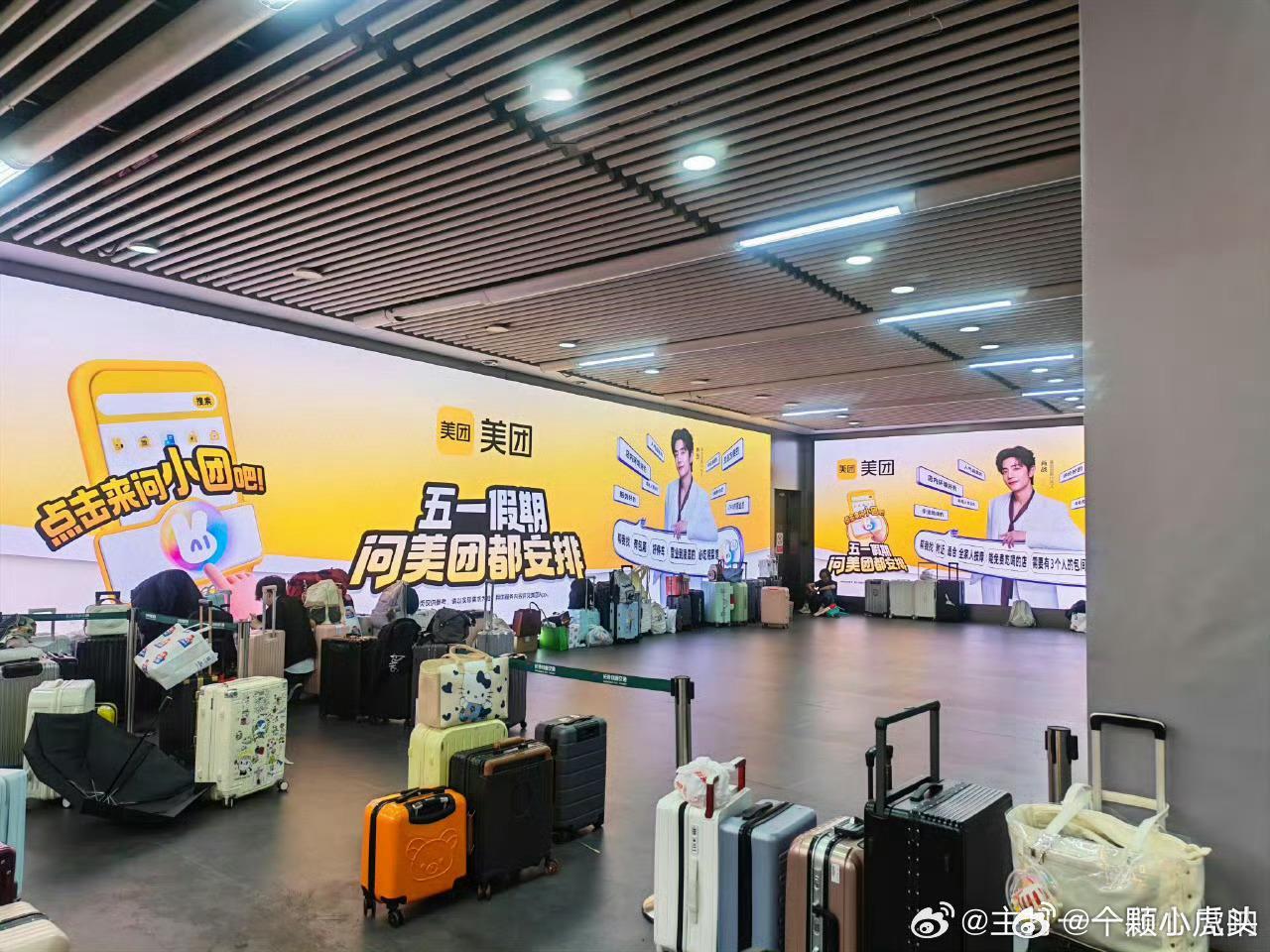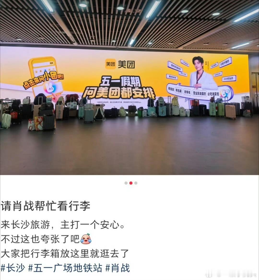 肖战广告牌在地铁替人看行李继上次有人让肖战广告牌看耳机,现在又有人让肖战看行李了