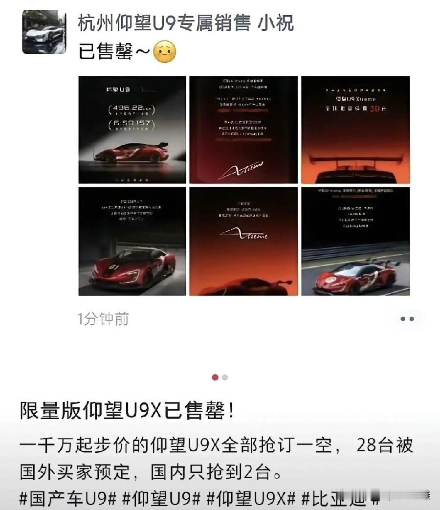 比亚迪旗下的仰望汽车太牛了,居然超越布加迪成为世界第一速度量产车! 而且限量30