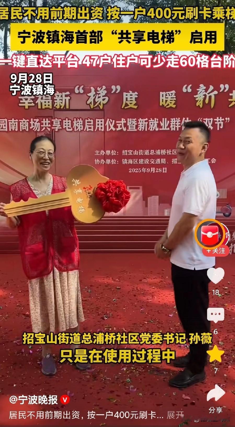 宁波又敢为人先,推出了共享电梯。这将能够解决很多老旧小区没有电梯的烦恼吧! 要知