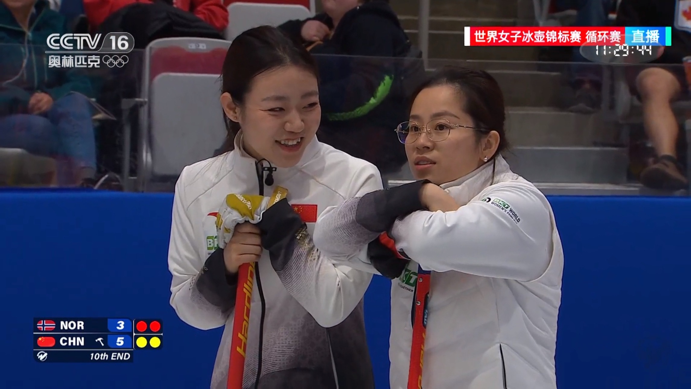 【中国-挪威】第九局芮姐双飞造空局,中国5-3挪威,后手进第十局,臧导快乐局来了