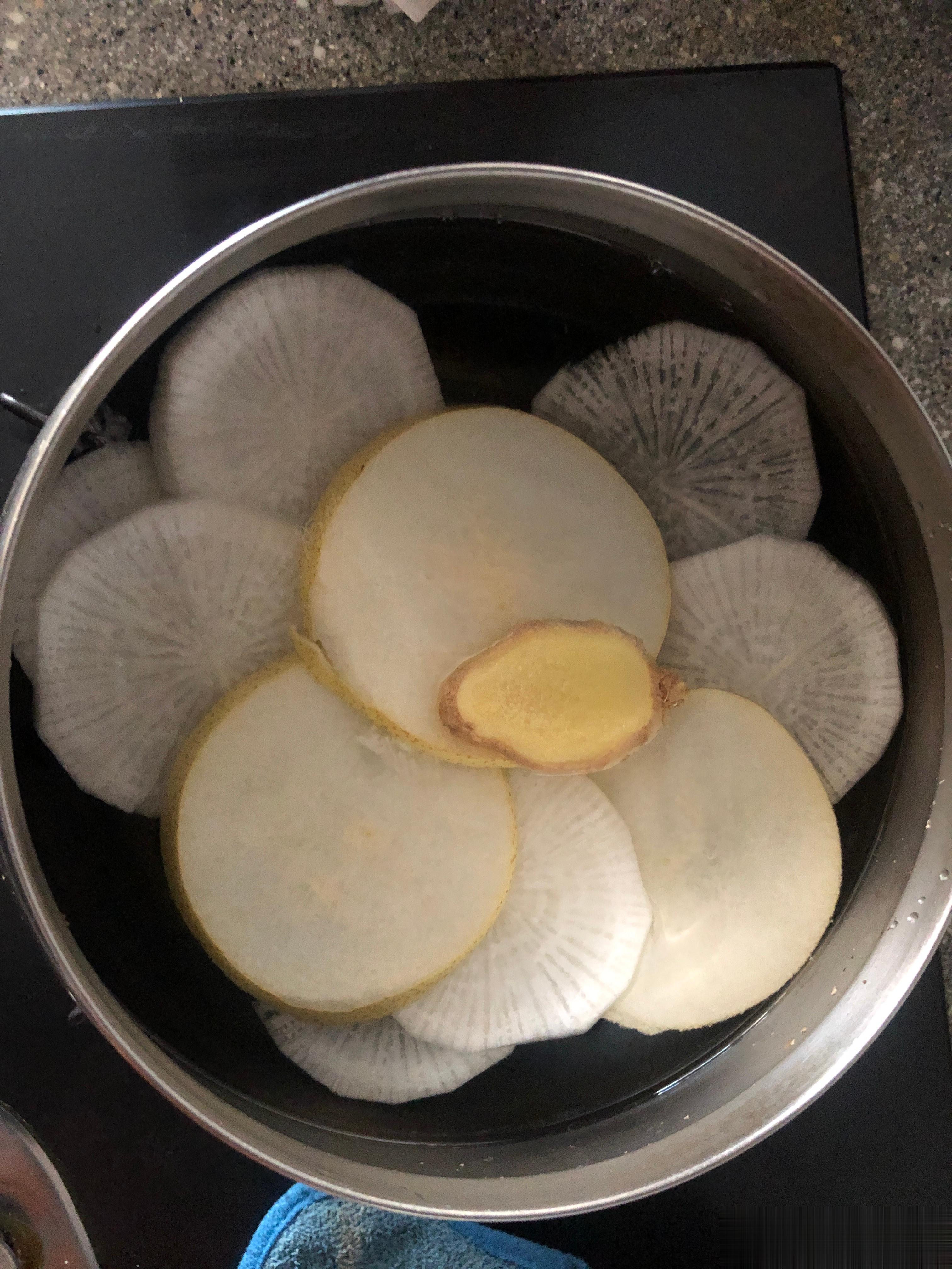 春节假期。暖气热水果,一直是温热的。煮萝卜雪梨生姜水,渴了就喝。