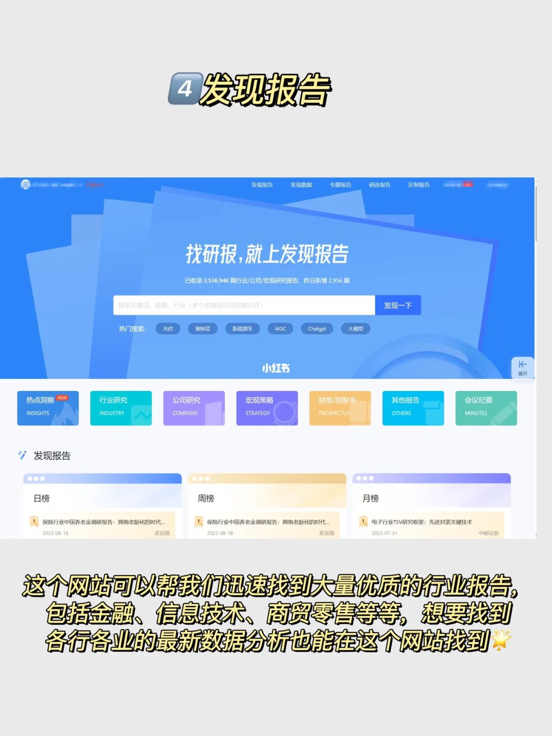 可帮我们迅速找到大量优质的行业报告,包括金融、信息技术、商贸零售等等,各行各业的最新数据分析也能找到