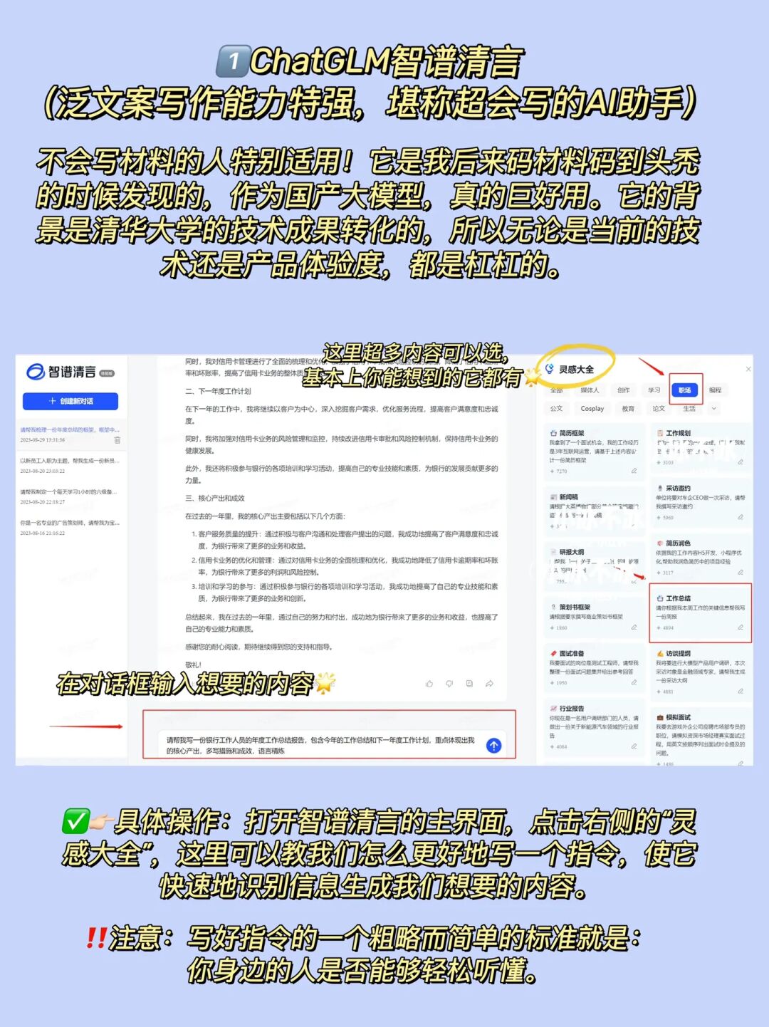 1️⃣ChatGLM智谱清言(泛文案写作能力特强,堪称超会写的AI助手)