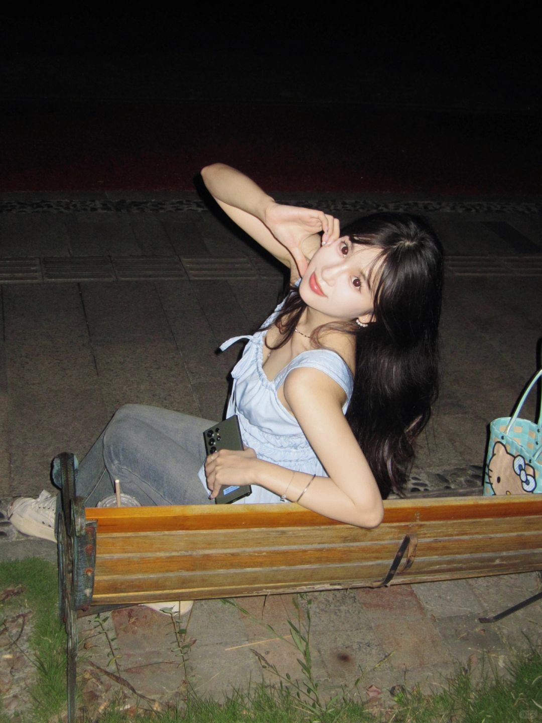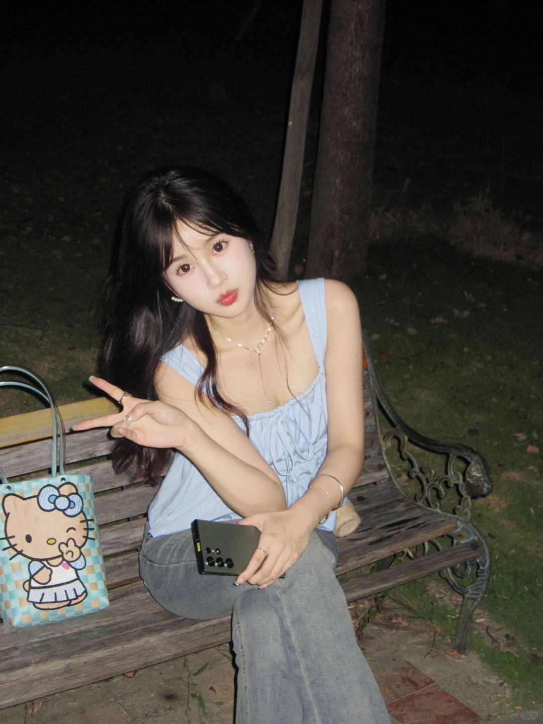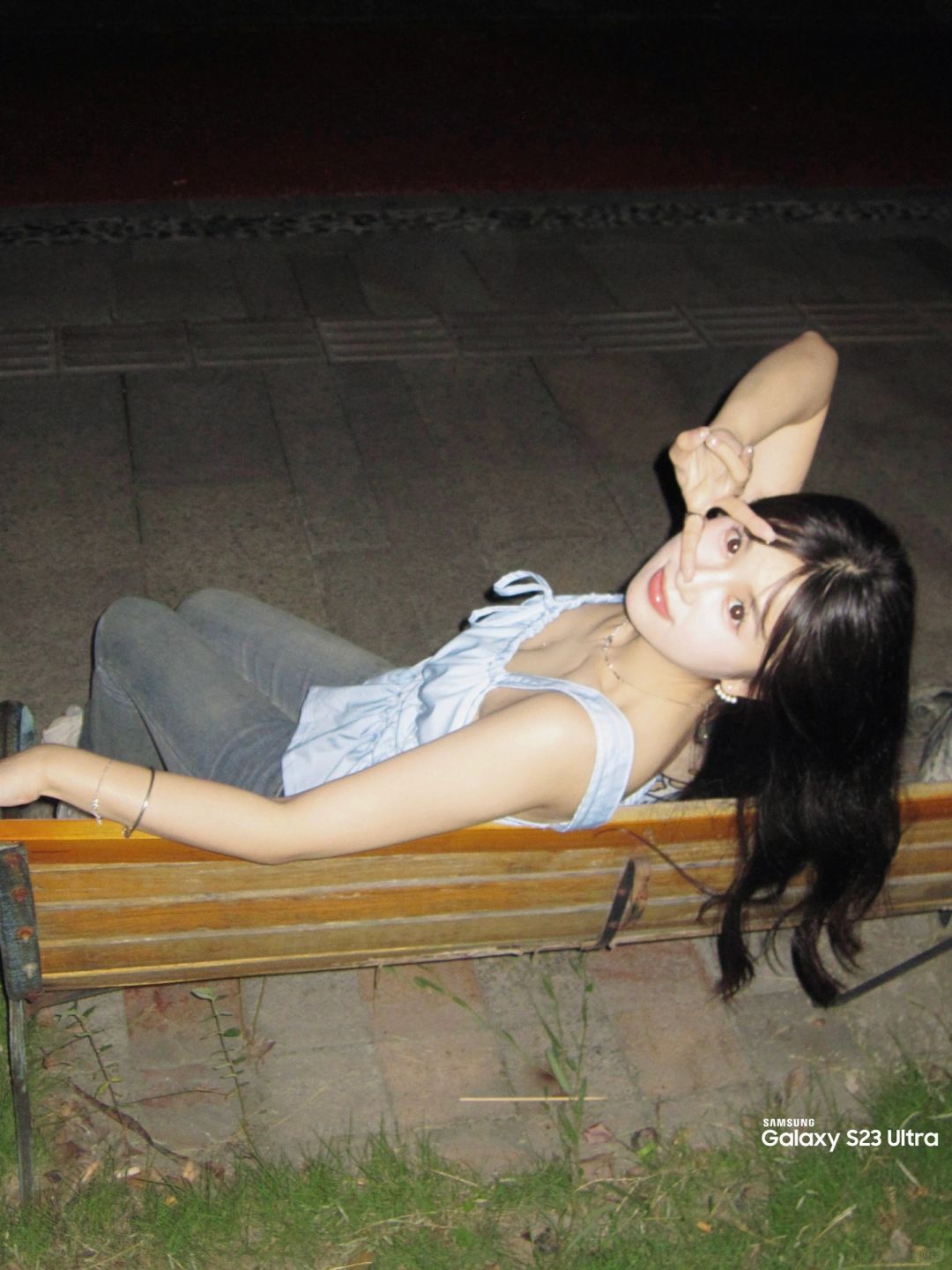 晚饭后去散步让姐妹给拍了几张 角度越新奇越可爱😻 坐着往后仰 手打开 比心比耶都可 手上有道具也可以拿着拍 在黑暗的地方开闪光灯 镜头放大1.5倍 后期再加个胶片滤镜好有感觉! 📱S23 Ultra