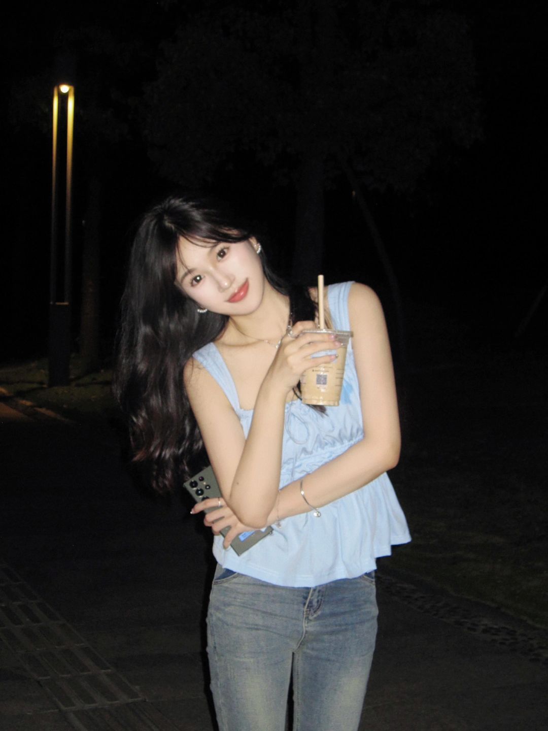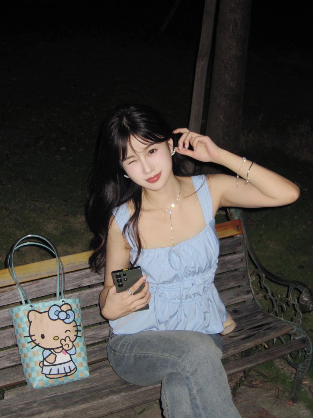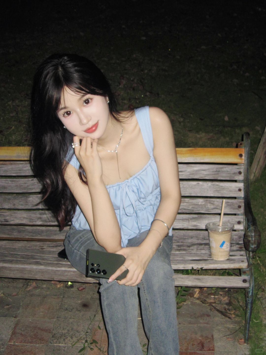 晚饭后去散步让姐妹给拍了几张 角度越新奇越可爱😻 坐着往后仰 手打开 比心比耶都可 手上有道具也可以拿着拍 在黑暗的地方开闪光灯 镜头放大1.5倍 后期再加个胶片滤镜好有感觉! 📱S23 Ultra