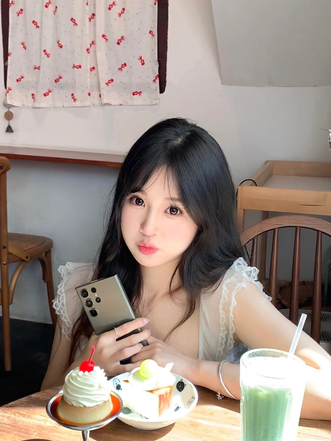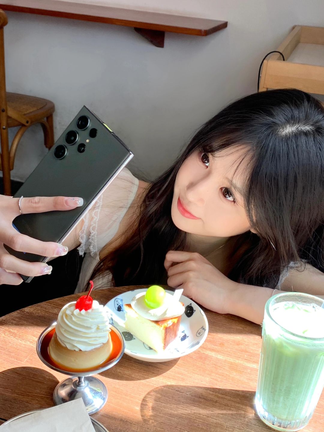 拿着小甜点和镜头互动拍好好看 和闺蜜去甜品店就这么拍! 甜甜的笑容分分钟出片 让闺蜜和你离3m远再放大原相机1.3倍 这样拍出来距离就刚刚好 📱:S23 Ultra