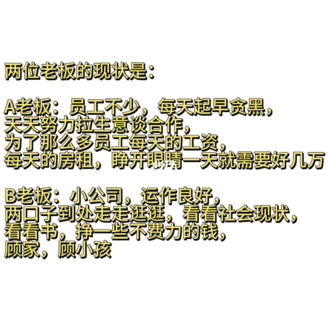 A老板:员工不少,每天起早贪黑,天天努力拉生意谈合作,为了那么多员工每天的工资,每天的房租,睁开眼睛一天就需要好几万