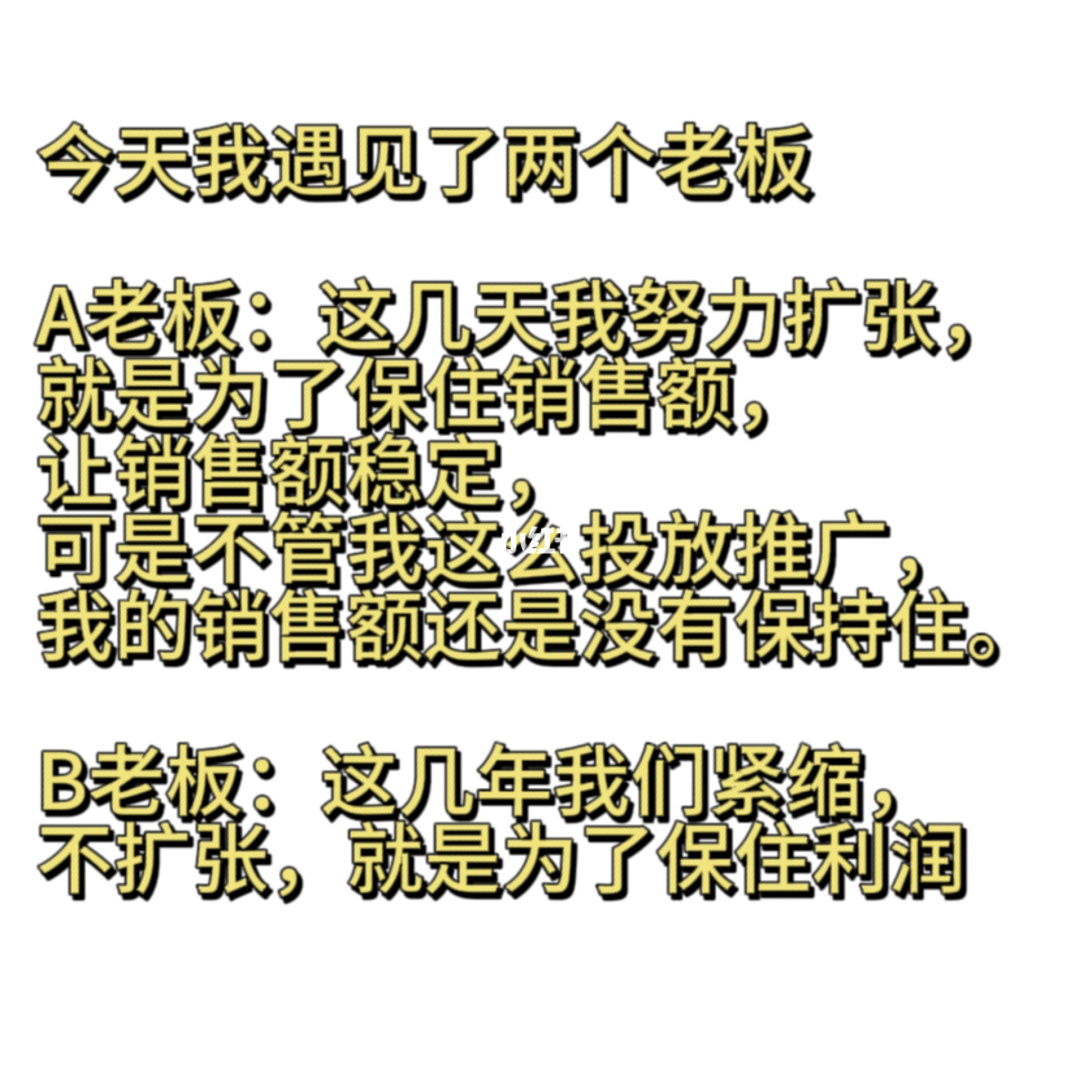 ①保住利润,而不是销售额,销售额只是一个障眼法,不要被销售额蒙蔽了我的生意扩大了,却越来越不挣钱