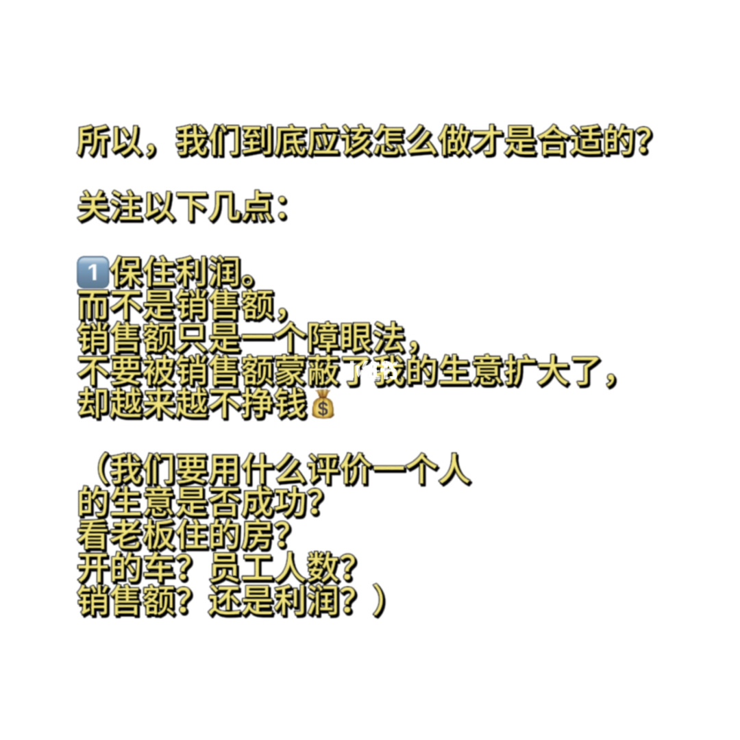 ①保住利润,而不是销售额,销售额只是一个障眼法,不要被销售额蒙蔽了