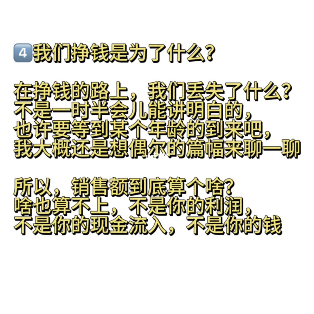 ④我们挣钱是为了什么?在挣钱的路上,我们丢失了什么?--不是一时半会儿能讲明白的,也许要等到某个年龄的到来吧,我大概还是想偶尔的篇幅来聊一聊