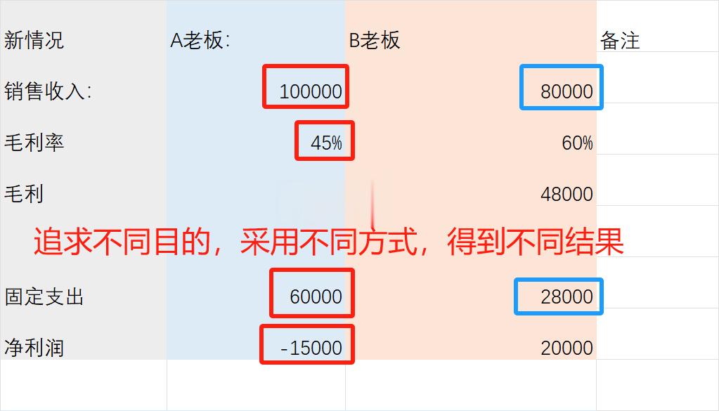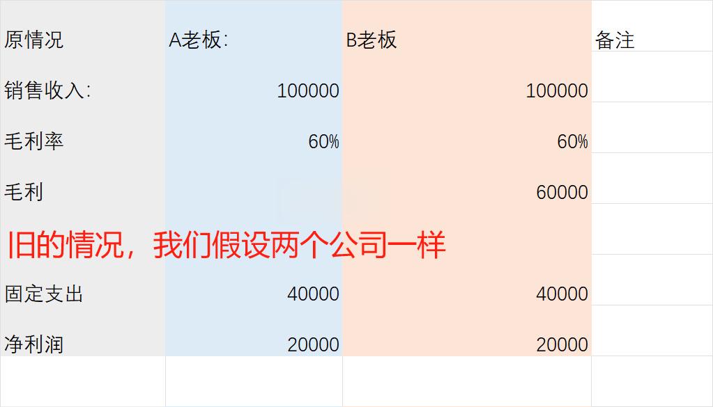 ②B老板至于8w的销售,但是保证了2w的利润