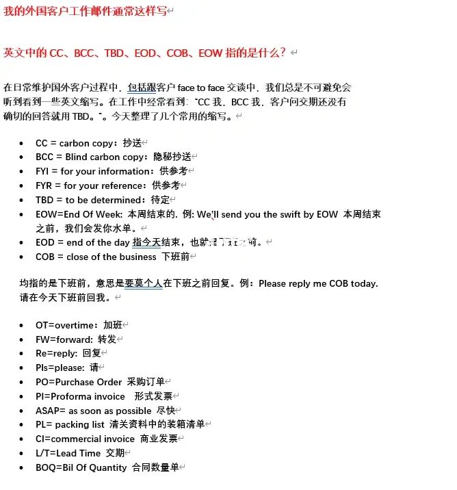 外贸人,努力赚💰~ 整理了一些常用的英文表达。