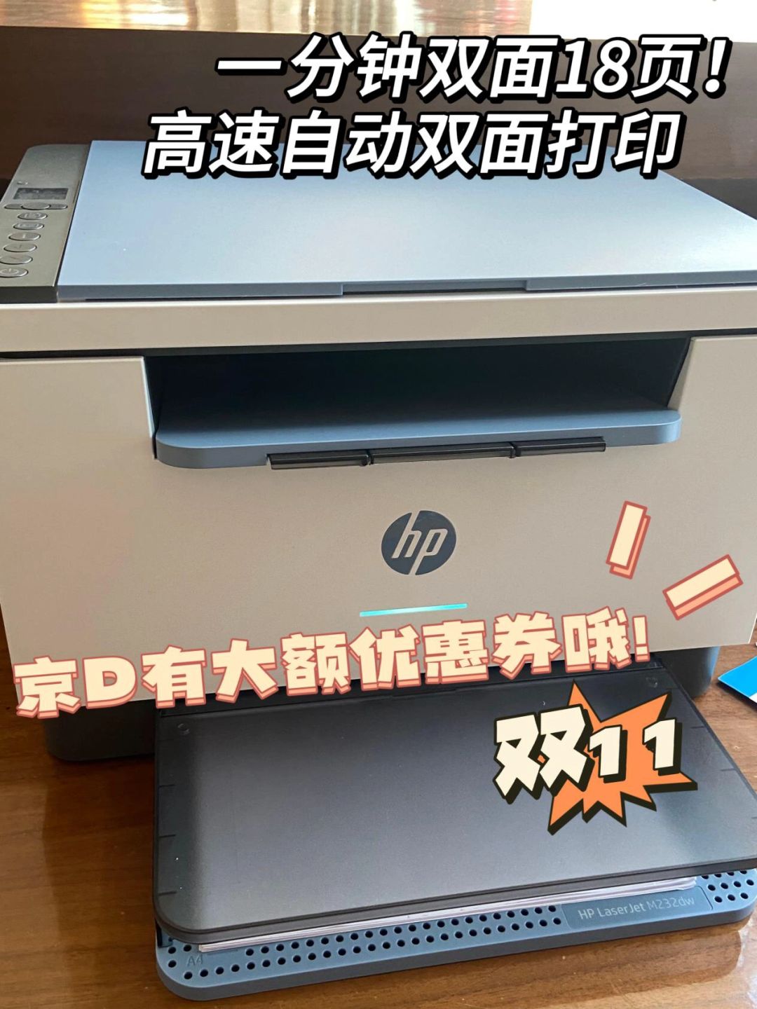 最近被同事安利了一台惠普激光一体机的M232dw打印机 直接打开了我新世界的大门 从来没想到原来打印机还有这么好用的 双面18页/分钟,高速双面打印的速度老快了,还不影响输出质量 平常打印标书啥的非常迅速 贴心的引导式控制面板设计,让新手也能快速上手 它还支持无线连接,使用HP Smart或者小程序 在手机上就能下达打印任务,我是比较喜欢的 有想买的姐妹可以趁着双十一满500-50入手一台 去JD搜“惠普激光打印机”就能找到哦~