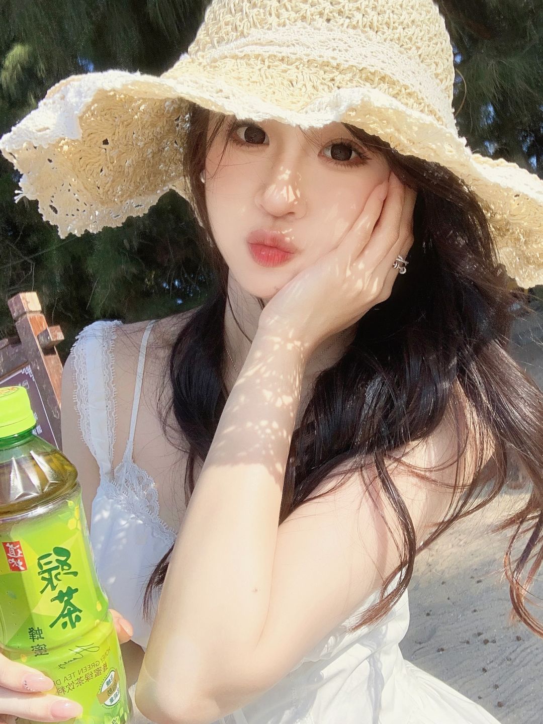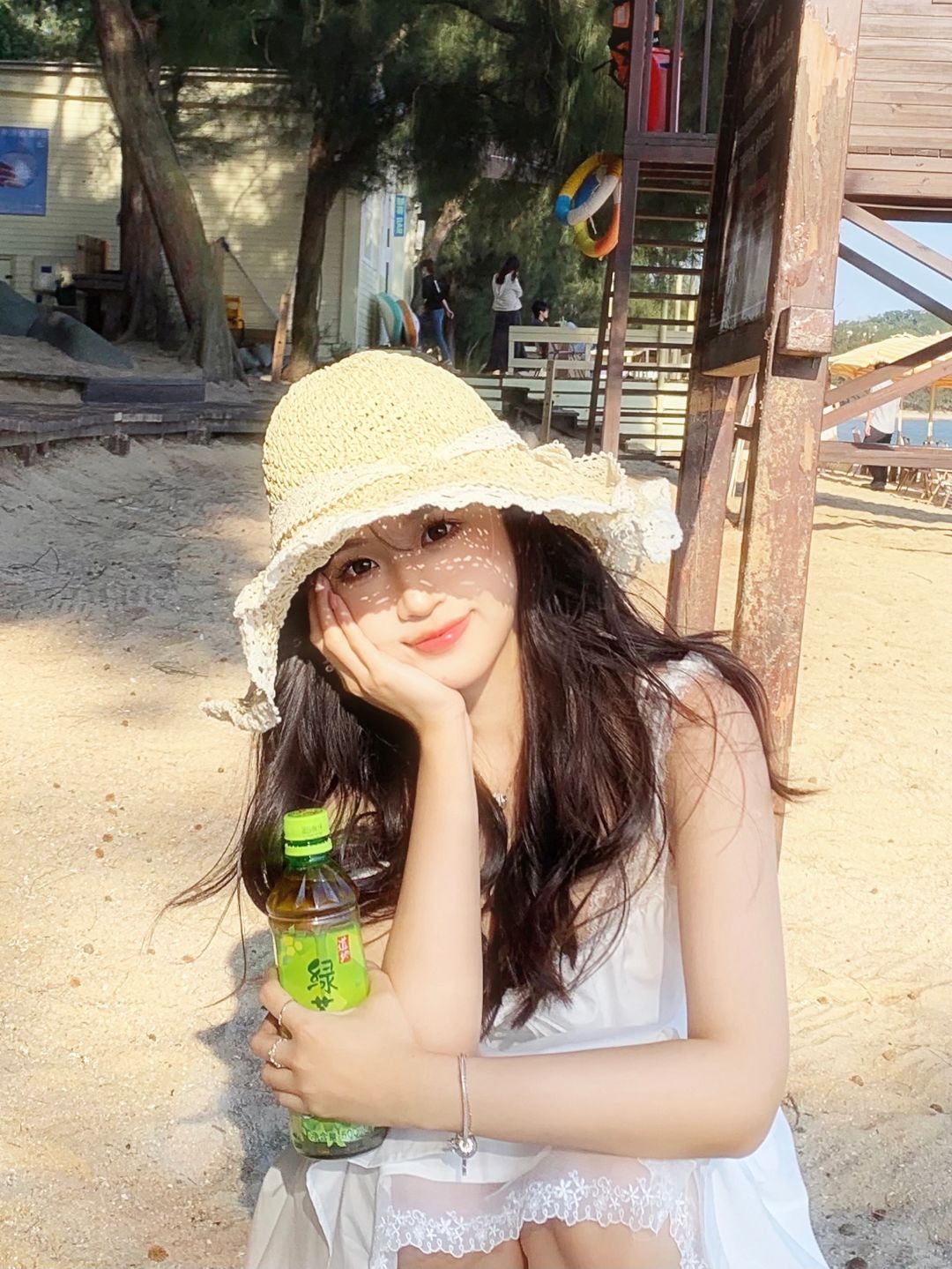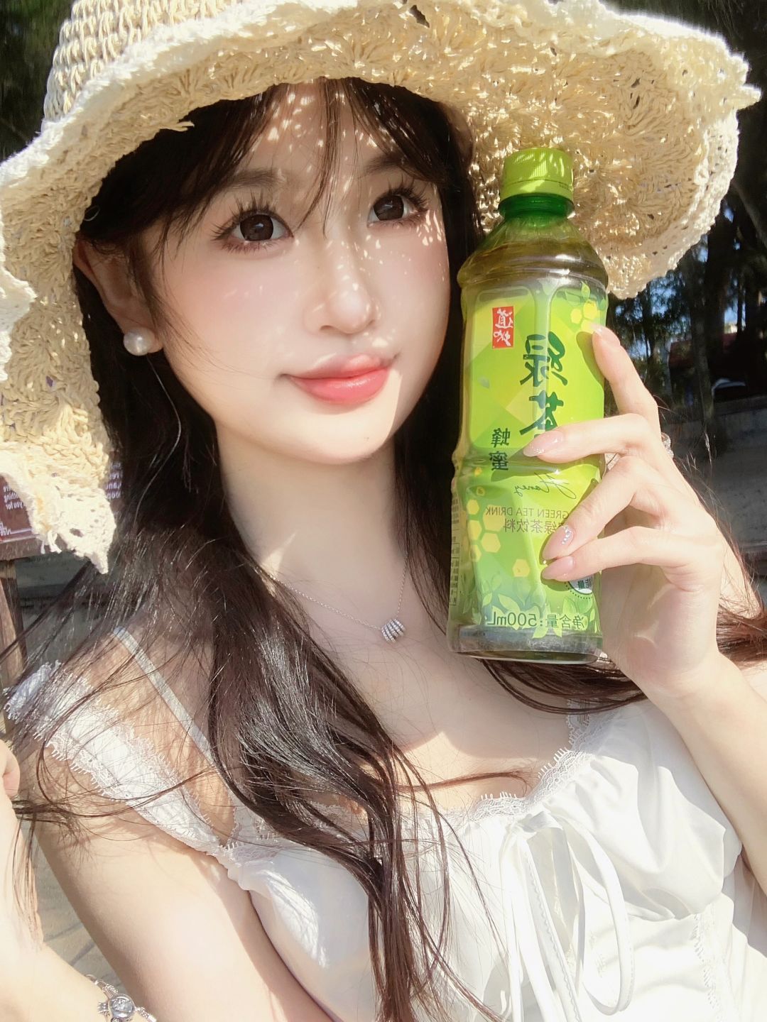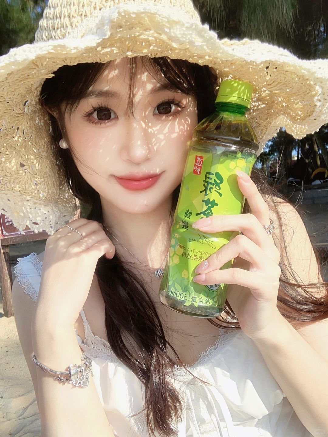 我也有阳光小雀斑啦 有阳光有海有风 好治愈 出门玩不忘带上道地的绿茶 低糖的蜂蜜绿茶清爽又健康谁不爱呀 给生活多一点味道
