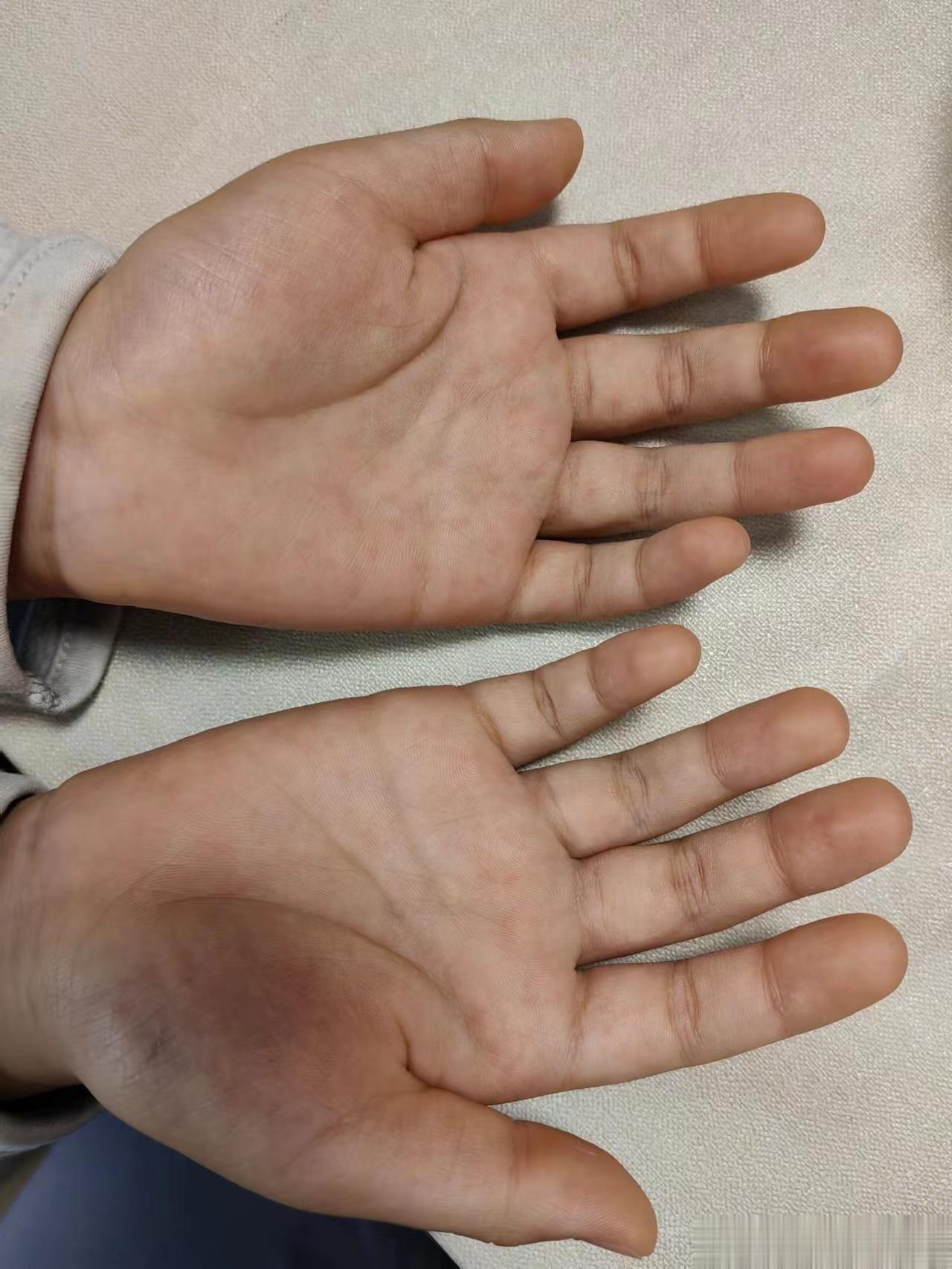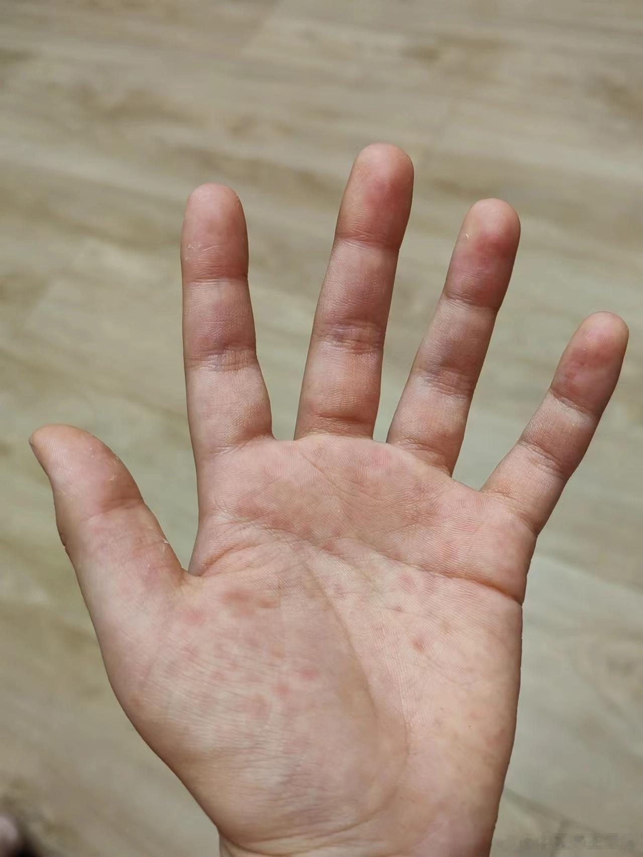 手心红色皮疹。