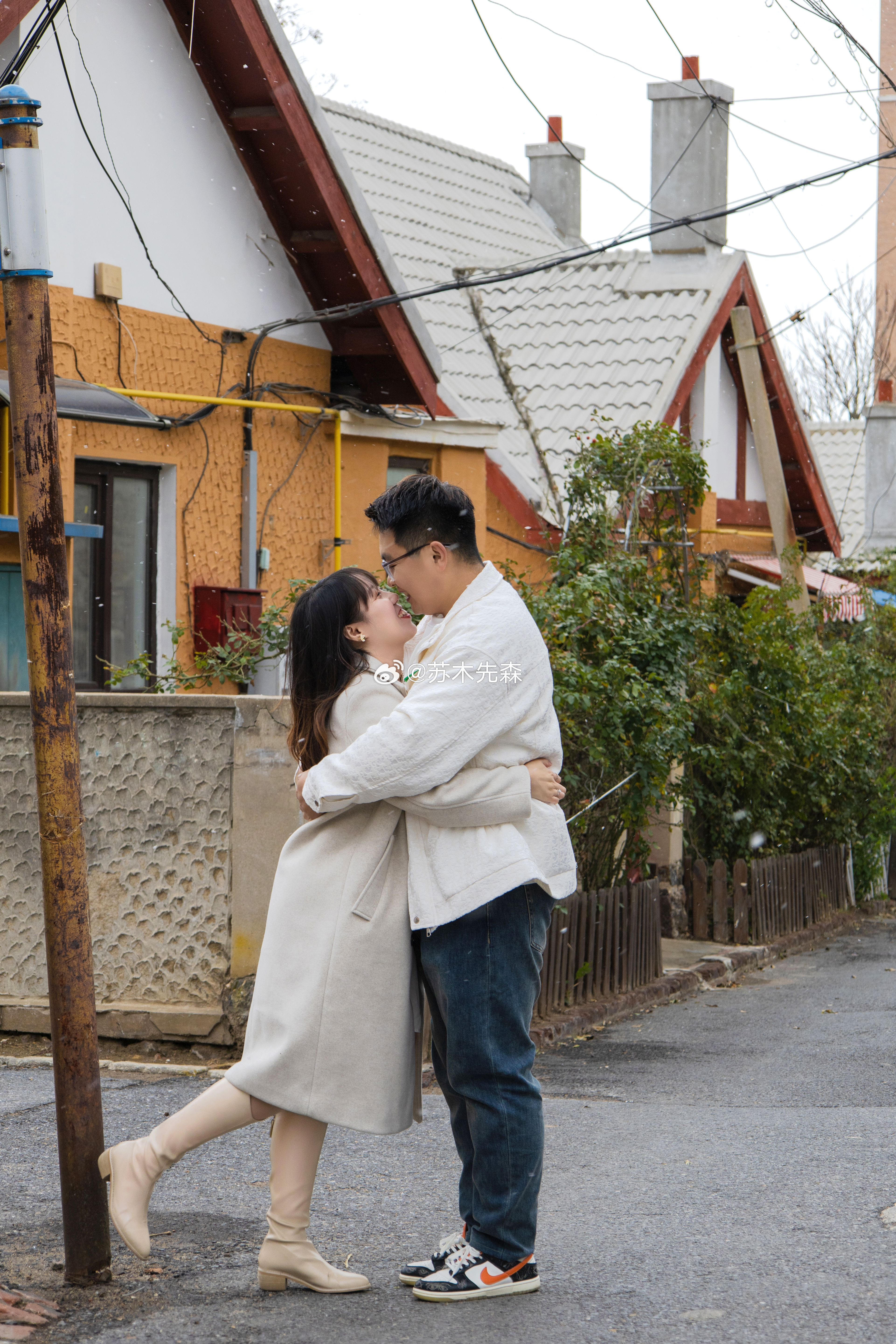 拍着拍着就下雪了,老街情侣照,领证跟拍
