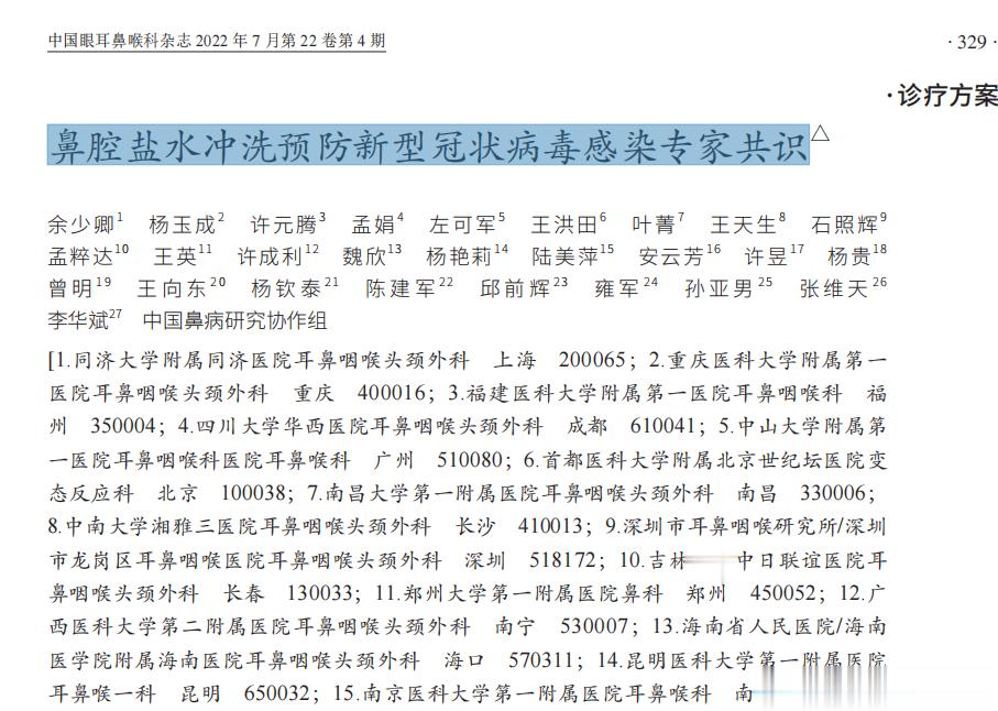《鼻腔盐水冲洗预防新型冠状病毒感染专家共识》曾介绍过这个方法。