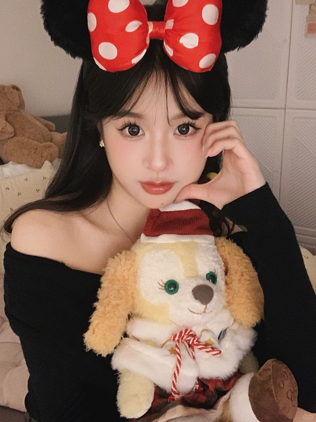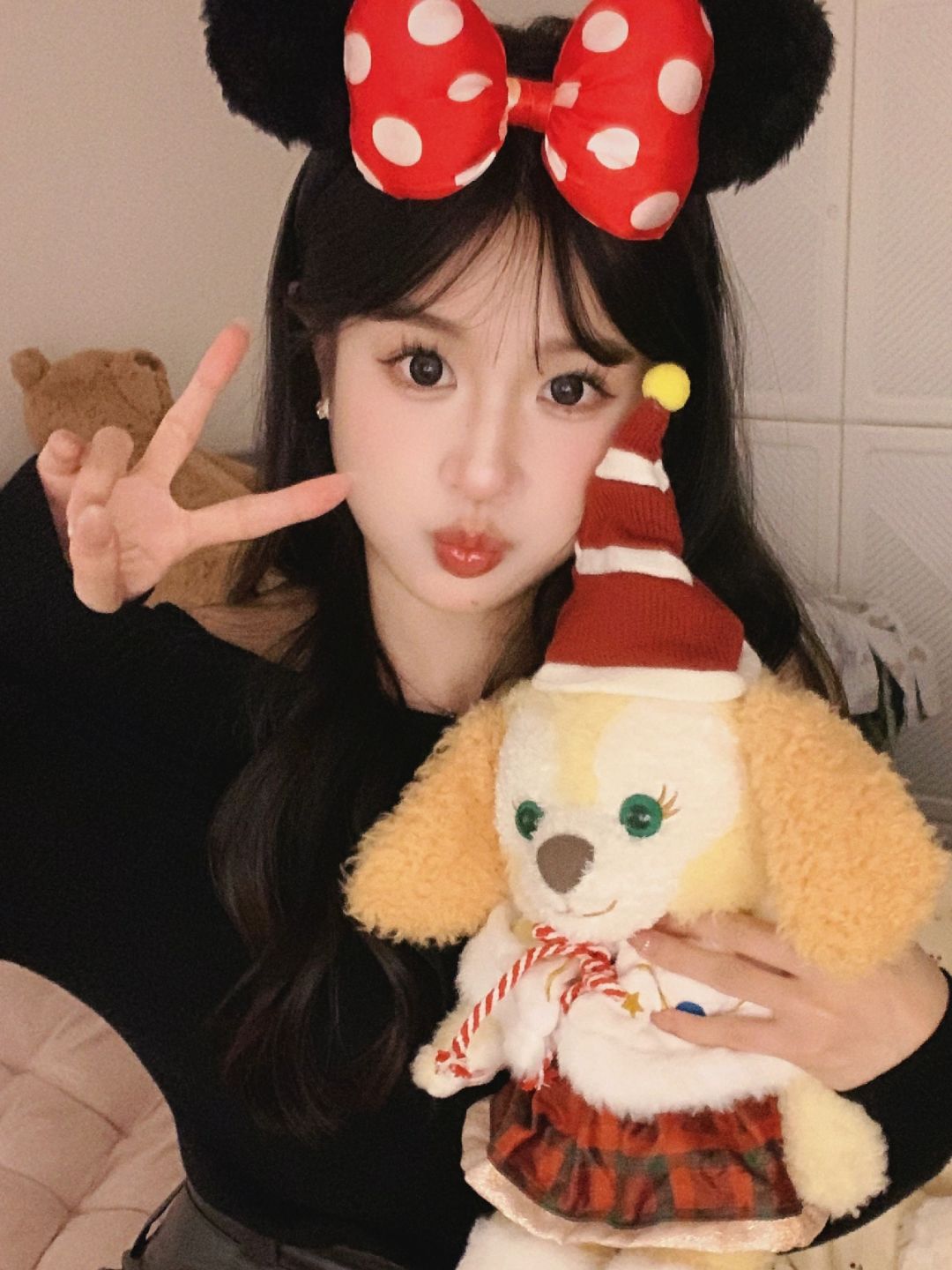 不同姿势拼成四宫格好可爱 和公仔互动拍好有趣