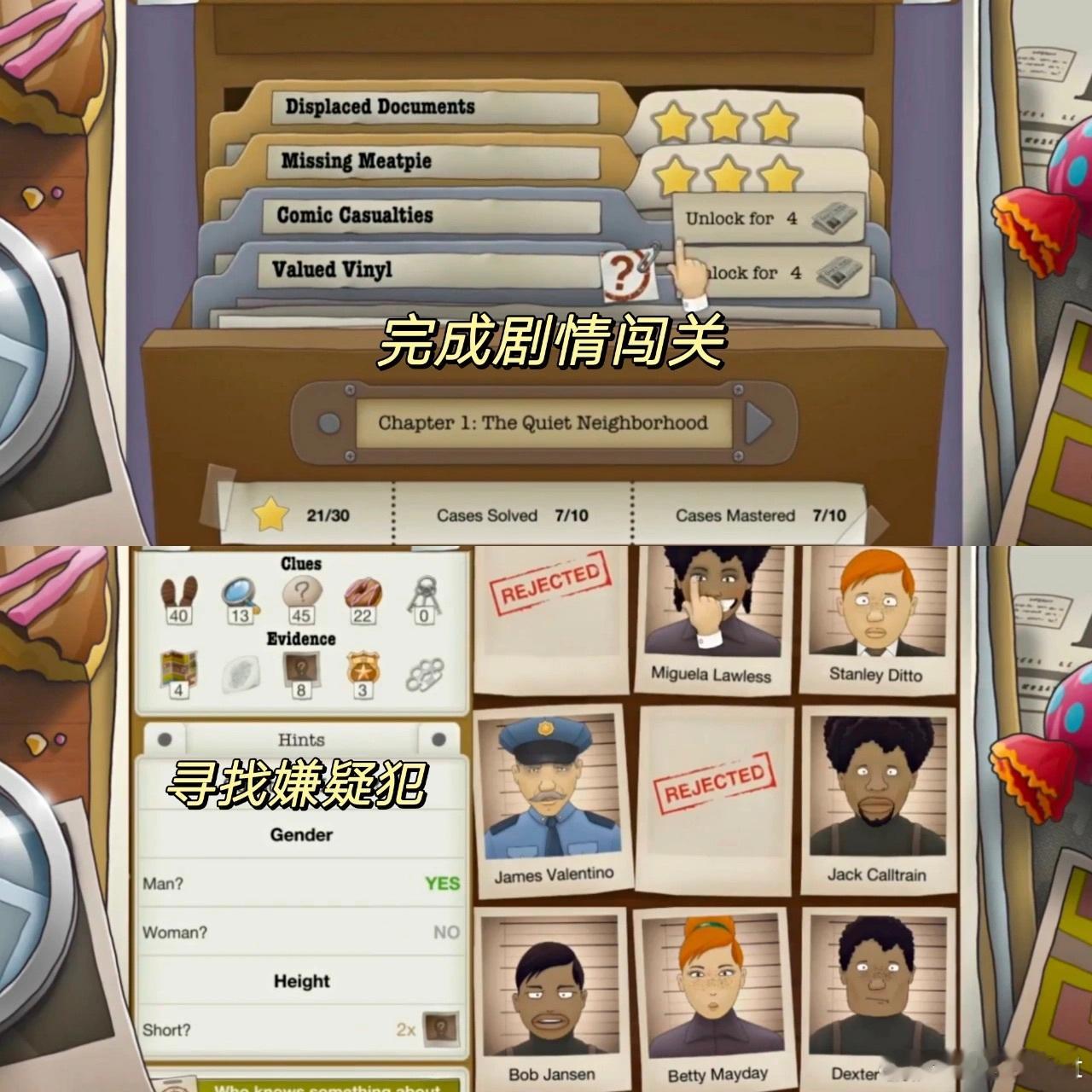 作为私人侦探的你,要去寻找嫌疑人和证据来完成任务,从一件件小事到惊天大案,难度系数也会越来越大
