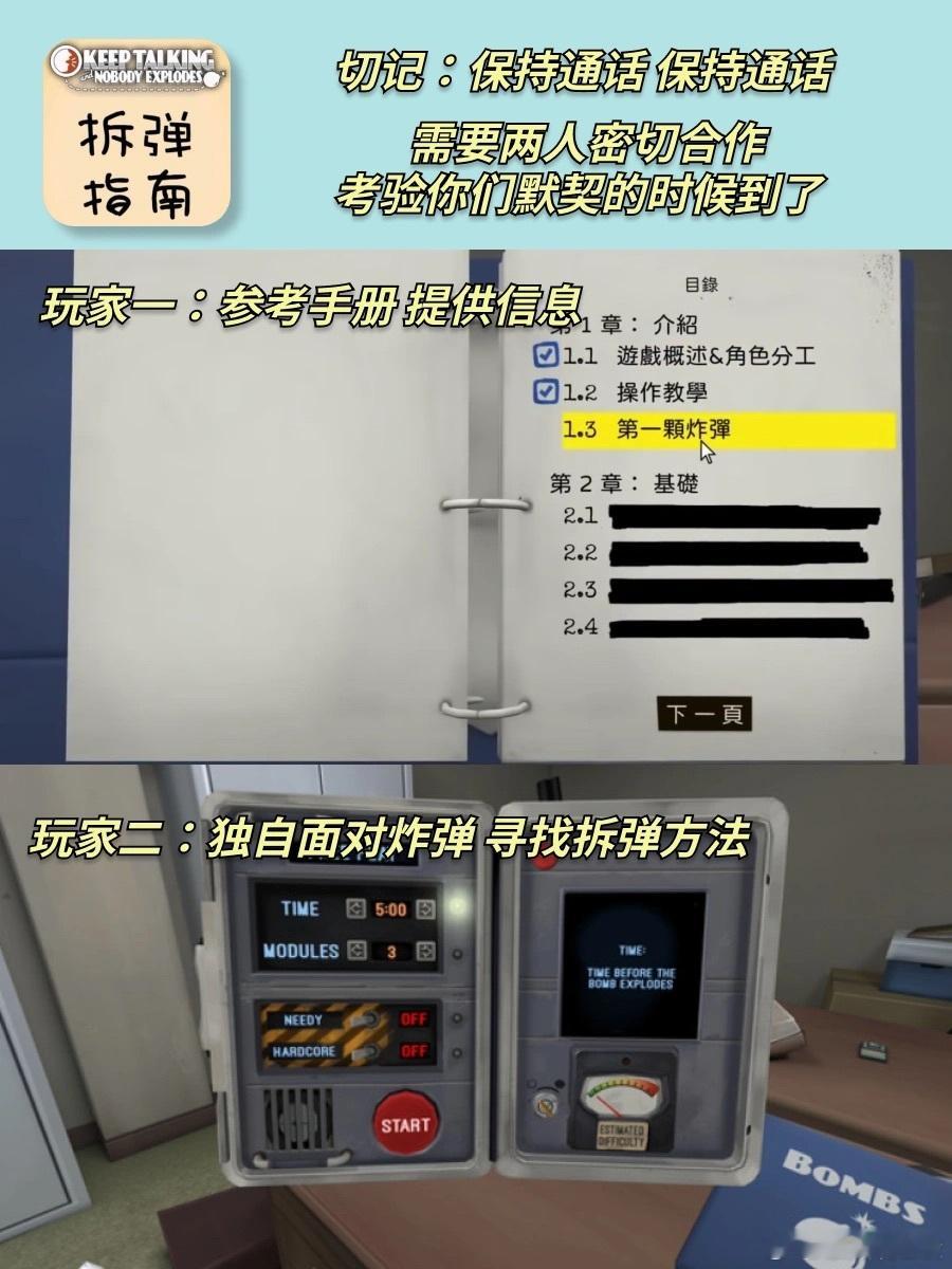 你的伙伴手中有拆弹手册,但他们看不见你手中的炸弹,不想炸就快开始说话!