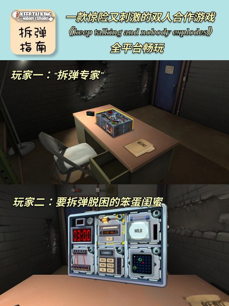 一款双人合作类游戏,你要和你的伙伴密切配合,拆除炸弹。