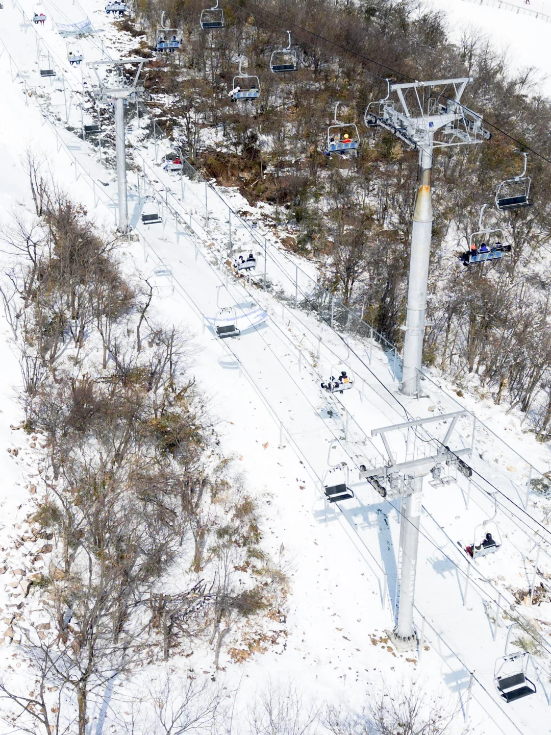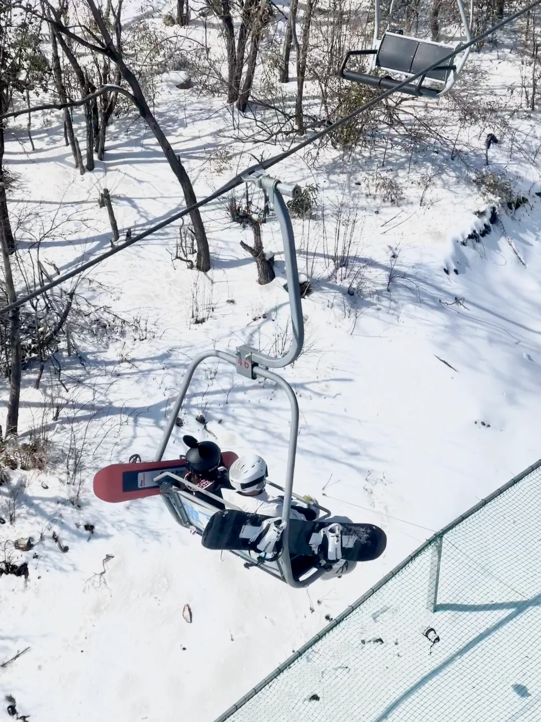 ✔️高级道2条,需要现场补200r,坐吊椅式索道上山,最长雪道有1000m,这里高手云集,人也比较少。新手可以在下面拍拍照,但不建议尝试。