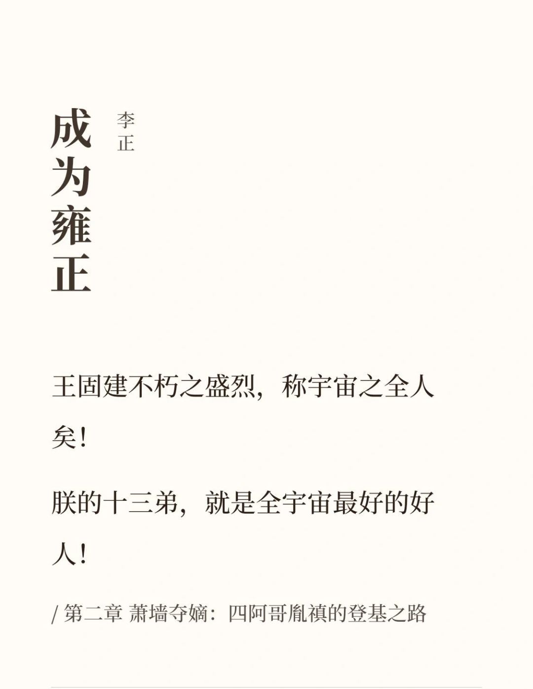 更是真实历史上九子夺嫡的蕞后胜利者,