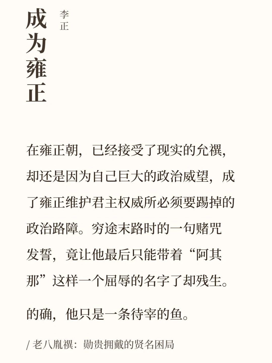老八真的太励志了,生母身份低位,完全靠自己在争取一切,奈何身边的猪队友太多了。