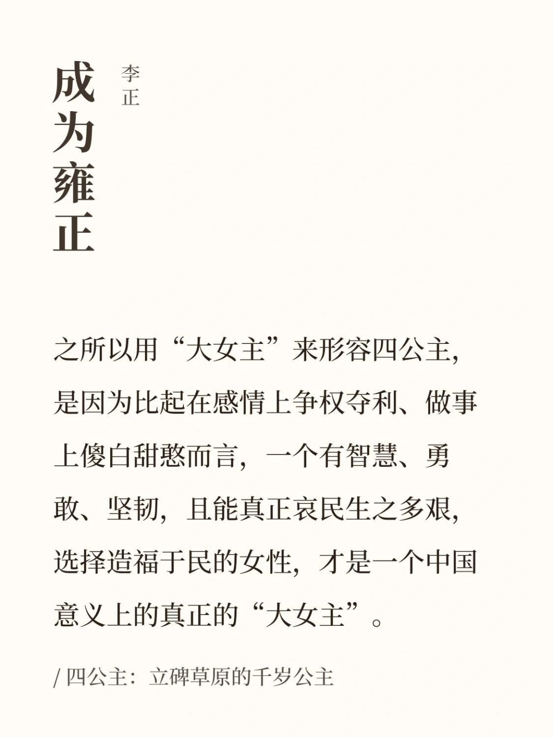 雍正的四公主非常传奇,她的故事可以算是爽文大女主了,丈夫对她一心一意,她自己又有主政一方的能力。