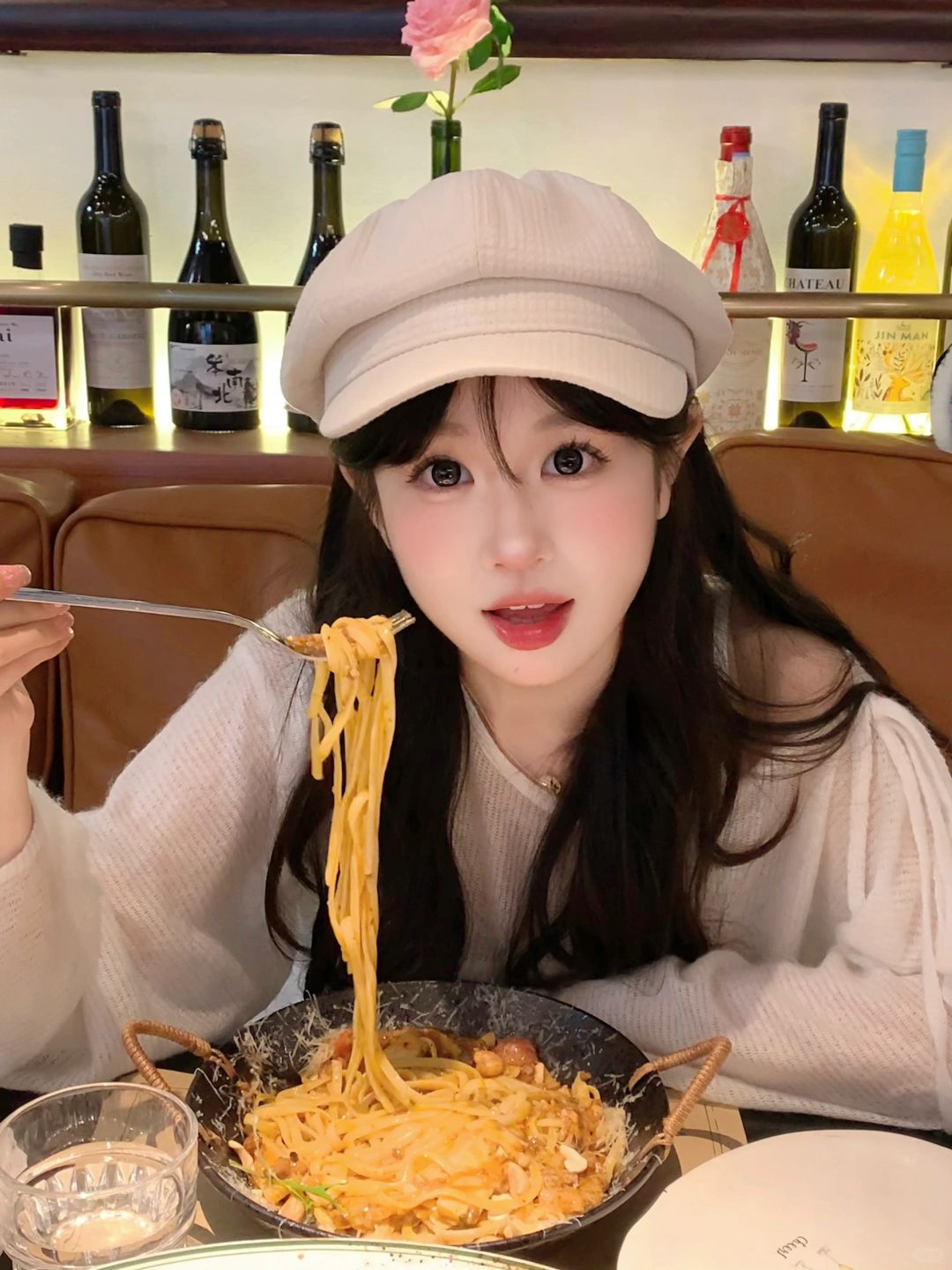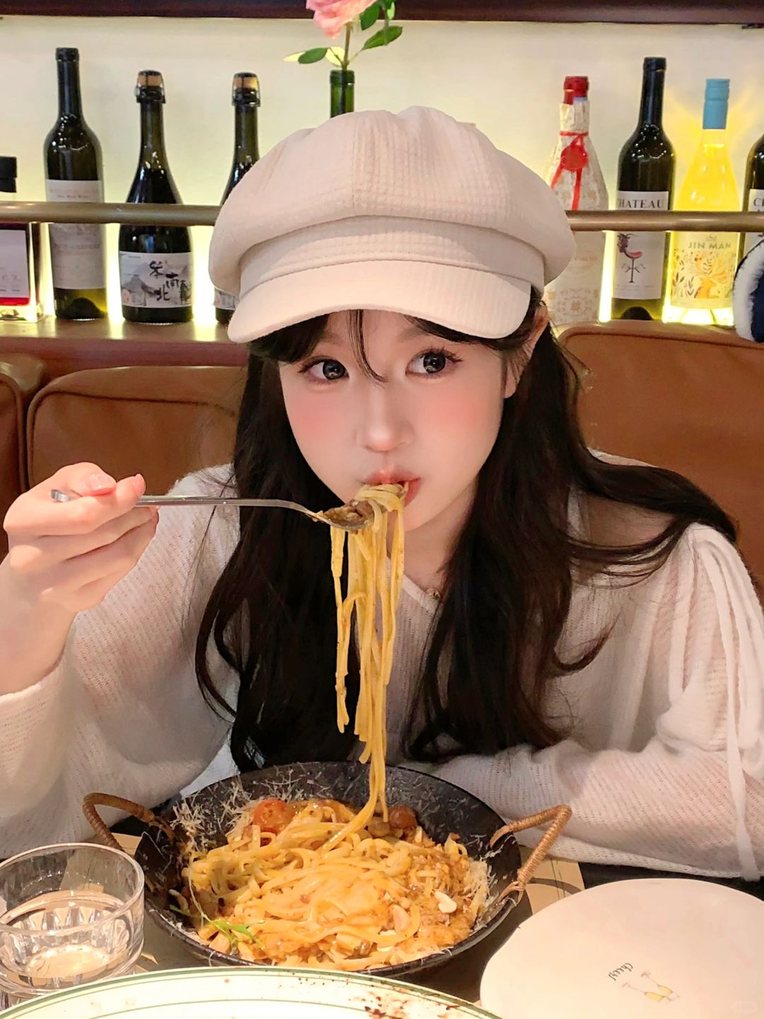 适合i人饱饱的小幅度pose 吃意面这么拍好有生活感`・ᴗ・´