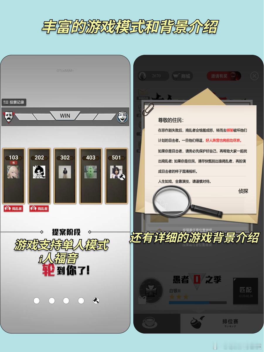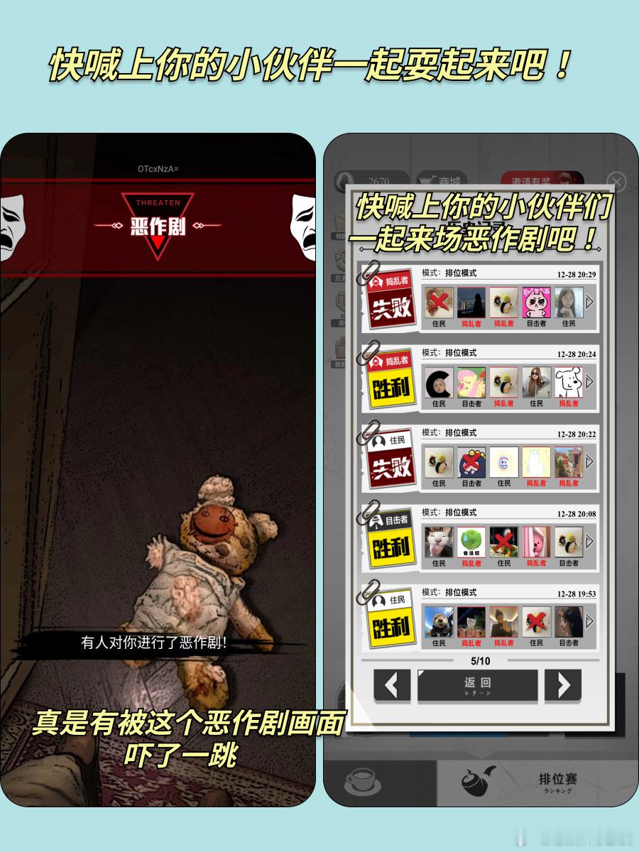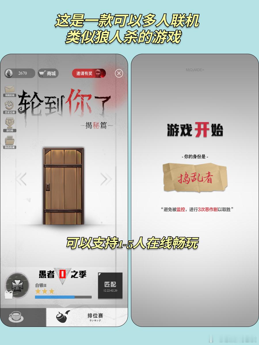 这个游戏一定要找头脑灵光的朋友一起玩哈哈哈,这游戏不仅吓人,还需要有一定的推理能力找到凶手!过程十分刺激。