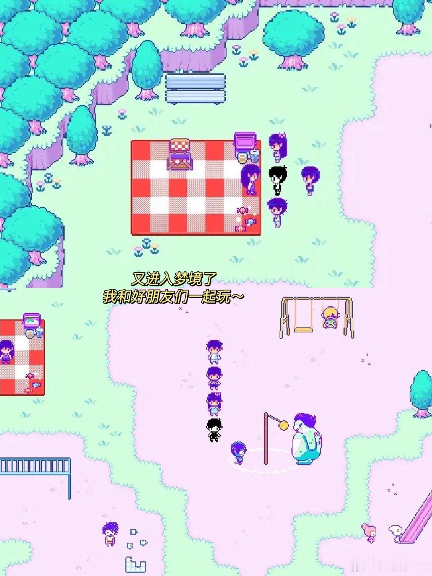 游戏开始时你扮演的Omori从邻居家醒来,和好朋友们还有姐姐一起快乐的玩耍。