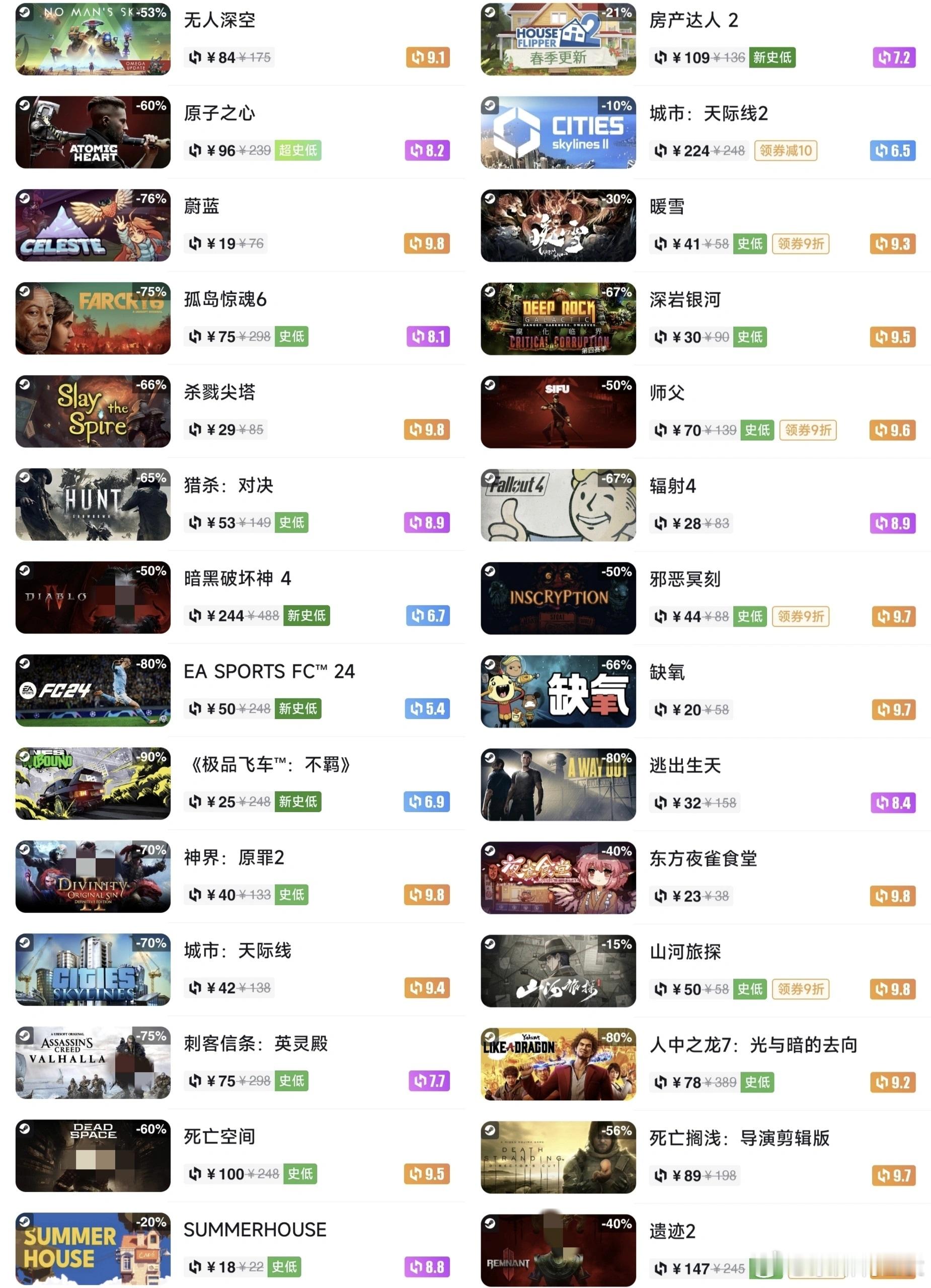 2024春促来了!steam热门折扣游戏大汇总[打call]