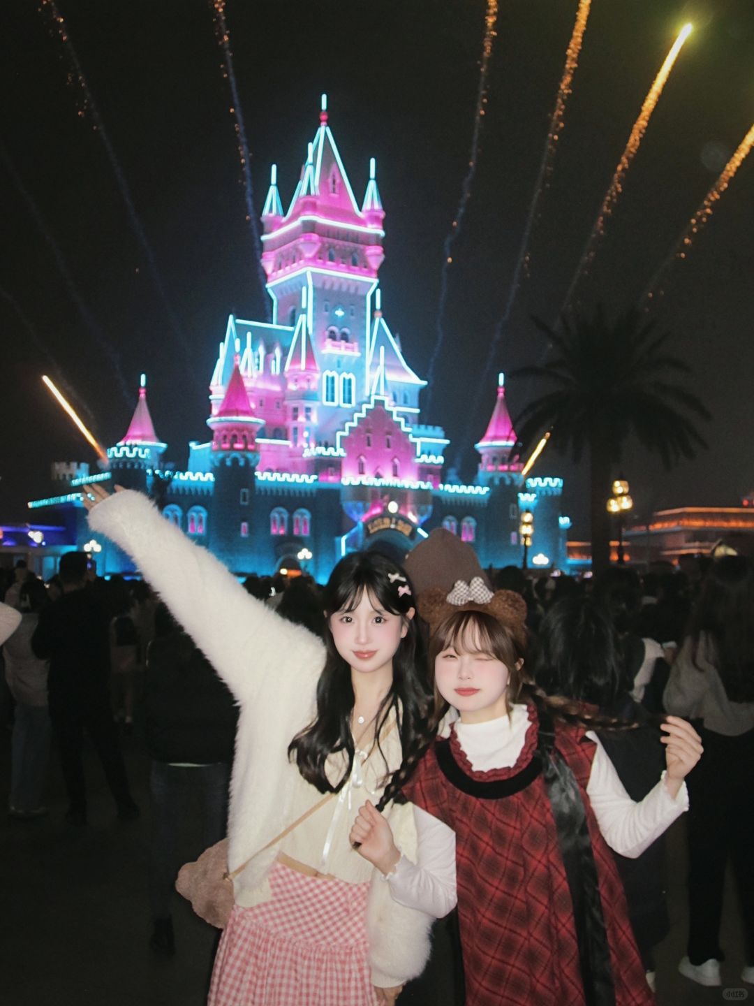 3.双层转马和转转杯必拍!很出片4.商店门口、礼品店内的萌熊公仔都很出片5.晚上9点去城堡前面看烟花,get烟花合影!