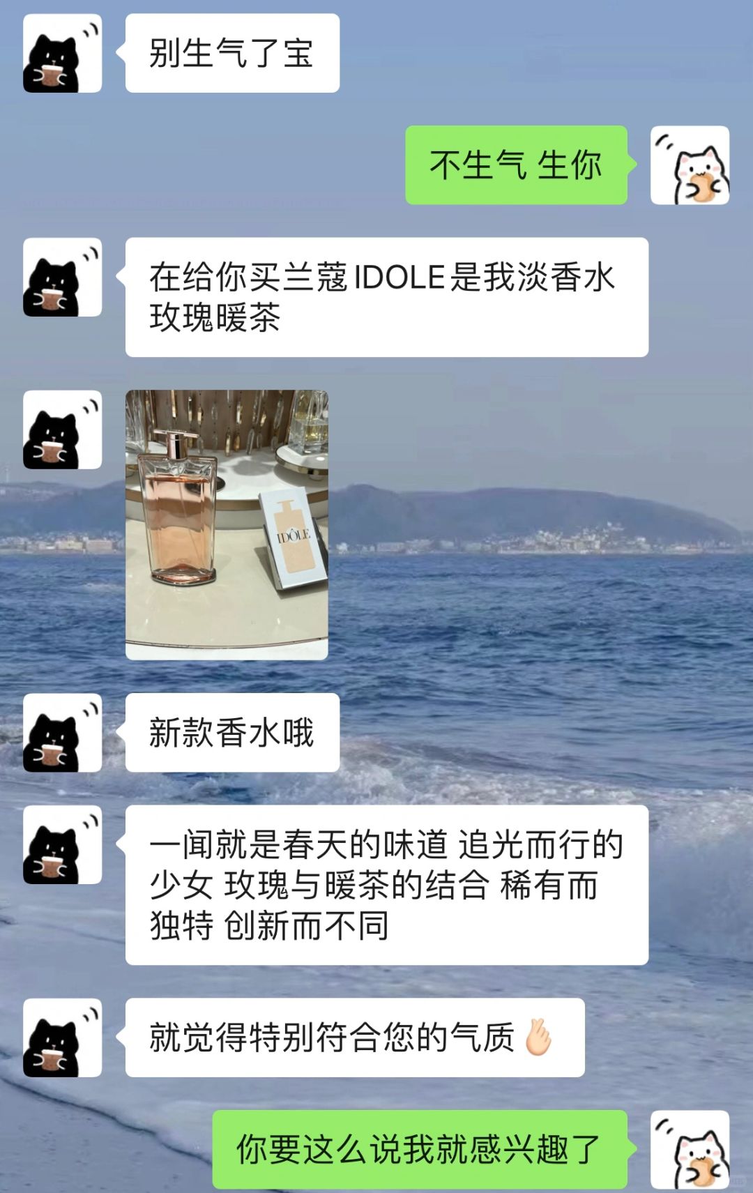 已读但乱回...... 真的很喜欢和男朋友玩这种有梗的聊天 情绪价值直接拉满 姐妹们是谁还不知道兰蔻出新香啦 LDOLE EDT淡香 采用珍贵的新茶与玫瑰的结合 具有独特花茶香味道 前调是破寒佛手柑的苦橙味 中调是晨间玫瑰的清香味 后调是日出新茶雪松的香草味 橙色的瓶身液体 真的太适合春天了