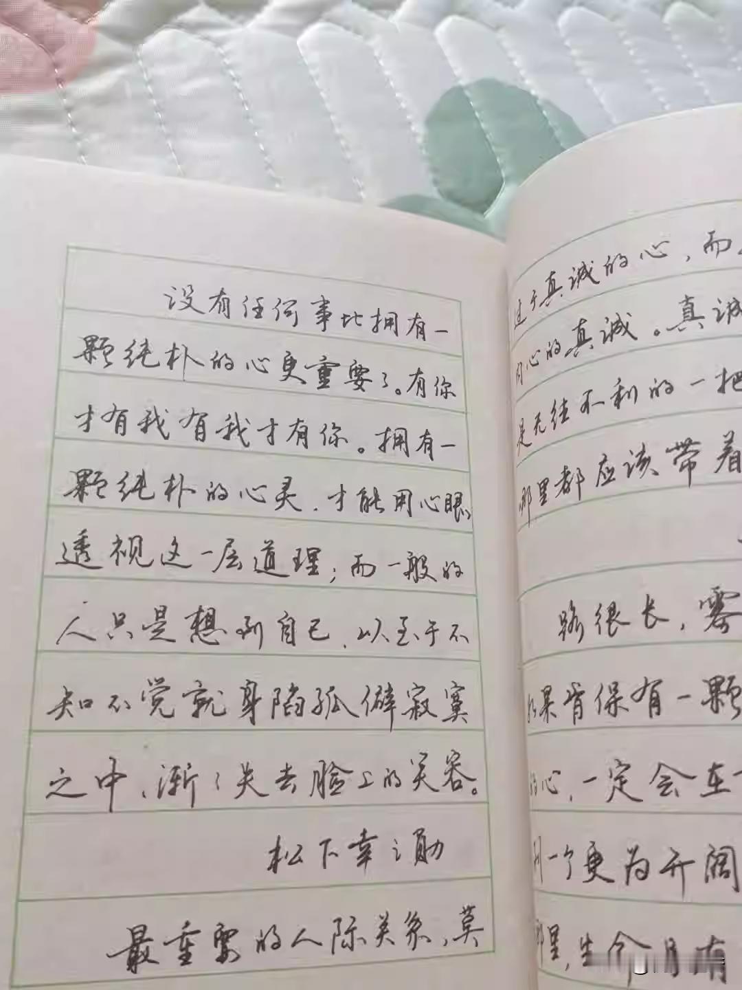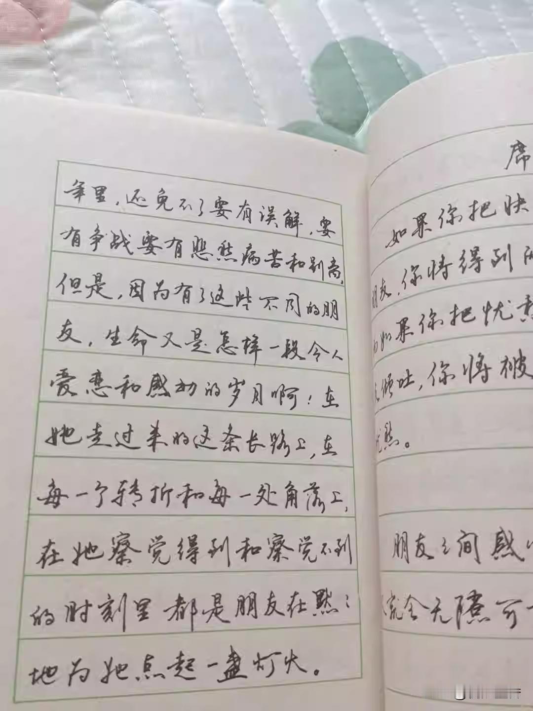 这硬笔书法,给人感觉很轻松,很灵动,没有法度谨严,没有笔画精致,没得端起架子,写起来的感觉很好![赞] 也不知道作者是谁,大概是出版于90年代,那时的硬笔书法家多如过江之鲫,书法的江湖精彩纷呈,现在的字帖专架,只有几个人的电脑排版字帖可选,没有一点逛书店的兴趣了! #硬笔##书法##行书#
