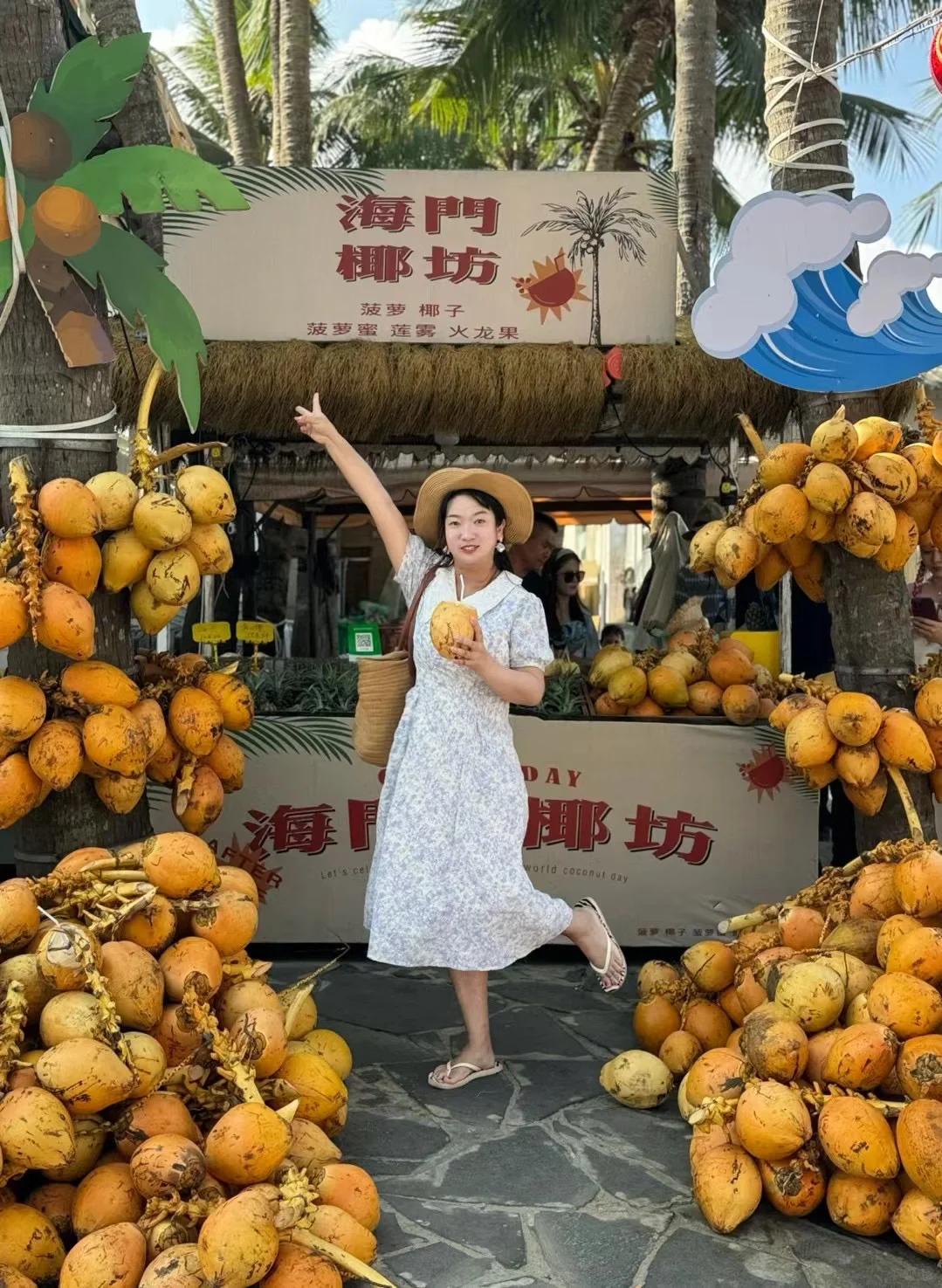 ⭐️海门椰坊:这里的椰子很多,椰子15元一个,买了即可随便拍照📷,错开傍晚高峰期去,小姐姐太多要排队