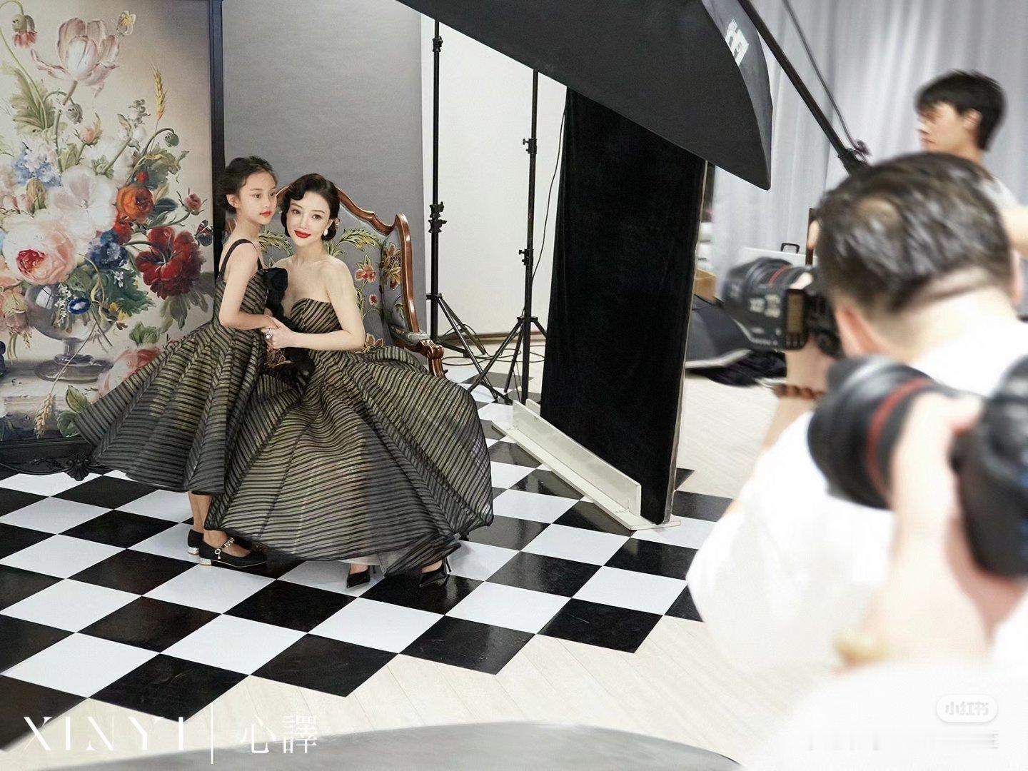 翻到一组李小璐、甜馨前几年拍摄亲子照的花絮