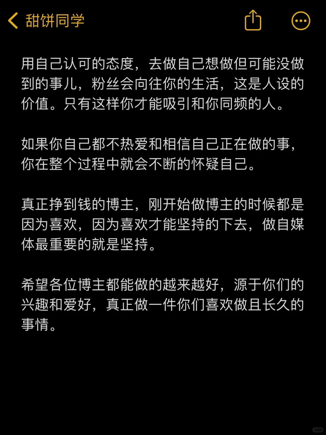 做了四个月的来总结一下:必须是你喜欢做这件事 而不是为了赚钱才去做 不能太看重结果 不然你会更不愿意去更新我现在很佛系 该日更就日更 不管什么内容 逼自己更新 更了就好~更着更着总有一条会莫名其妙爆了