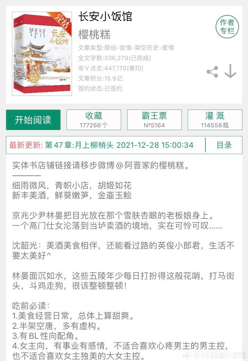 🍀这本书只要专注扫过美食文的人都听说过吧,是美食文里非常出名的一本书了。书里大段大段的美食描写让我口水斯哈斯哈[doge]本书开初女主从一个煎饼摊开始经营美食一直到租下一个铺面开自己的饭馆名声大振,喜欢这种经营模式文的不要错过。