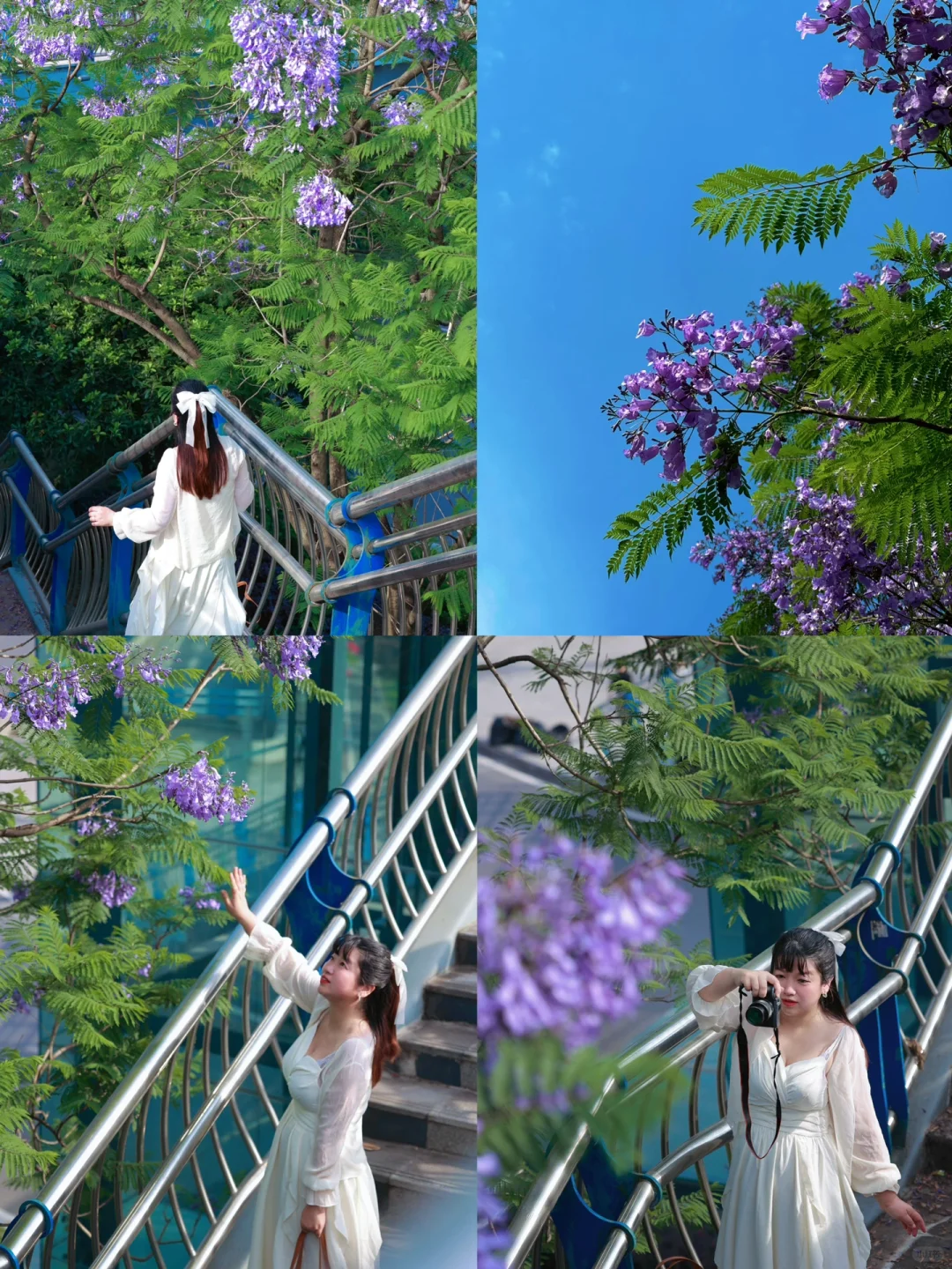 🌸蓝花楹是在公园门口向左前行500米的地方,有一个天桥那里拍到的