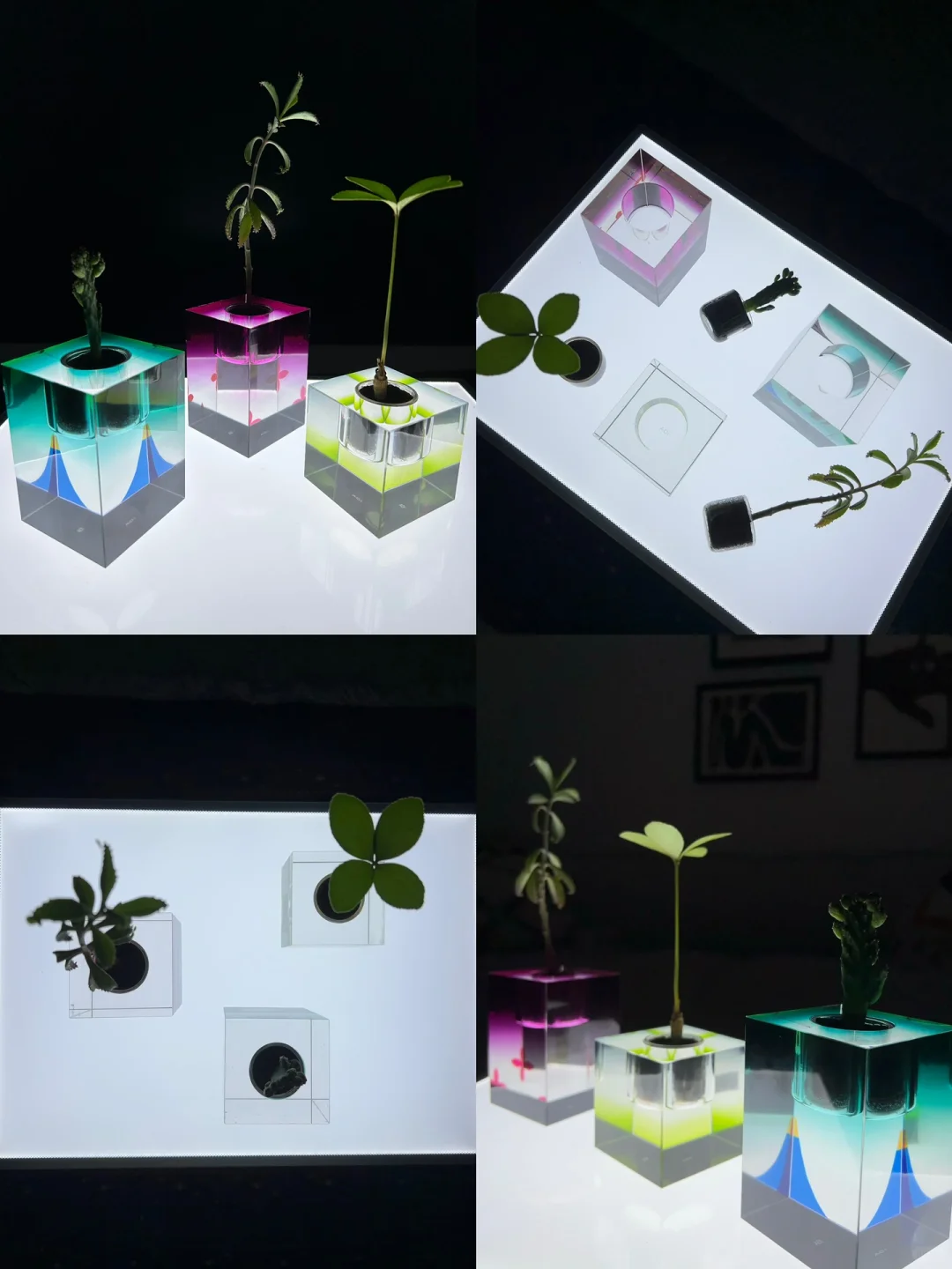 搭配艺术玻璃器皿的迷你小盆栽,精致到不行